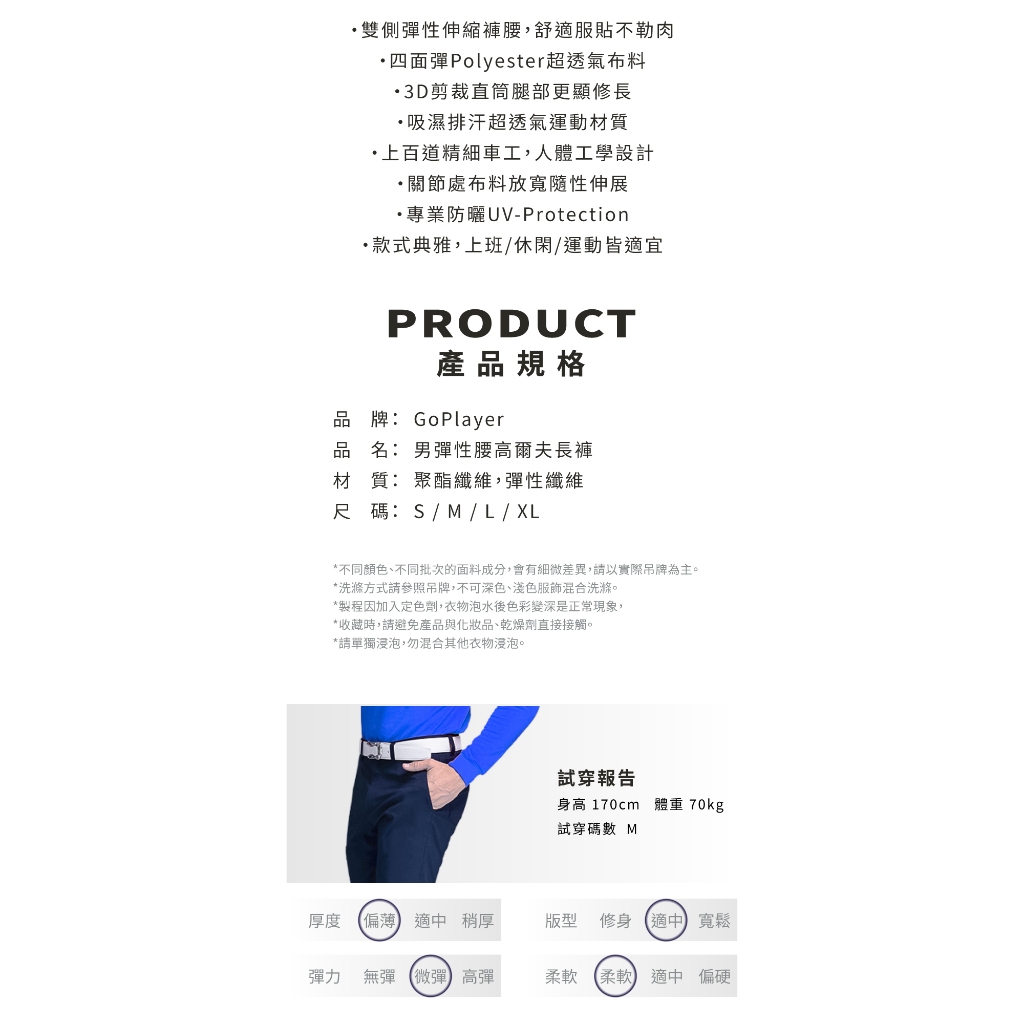 【GoPlayer】斷碼出清 男彈性腰高爾夫長褲 彈性腰圍 快乾透氣 春夏款長褲 高爾夫男褲暗藍,S|暗藍,M|暗藍,L|暗藍,XL|深灰,S|深灰,M|深灰,L|深灰,XLPantsGoPlayer高爾夫