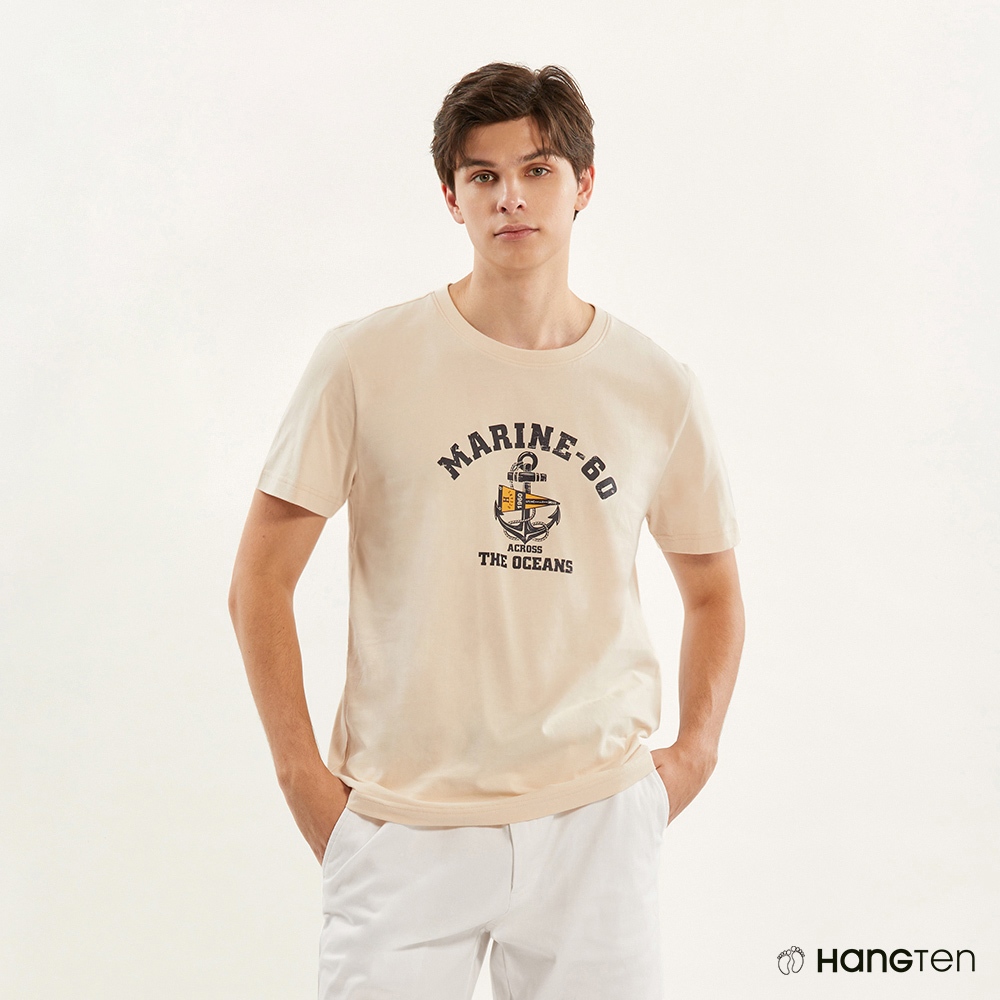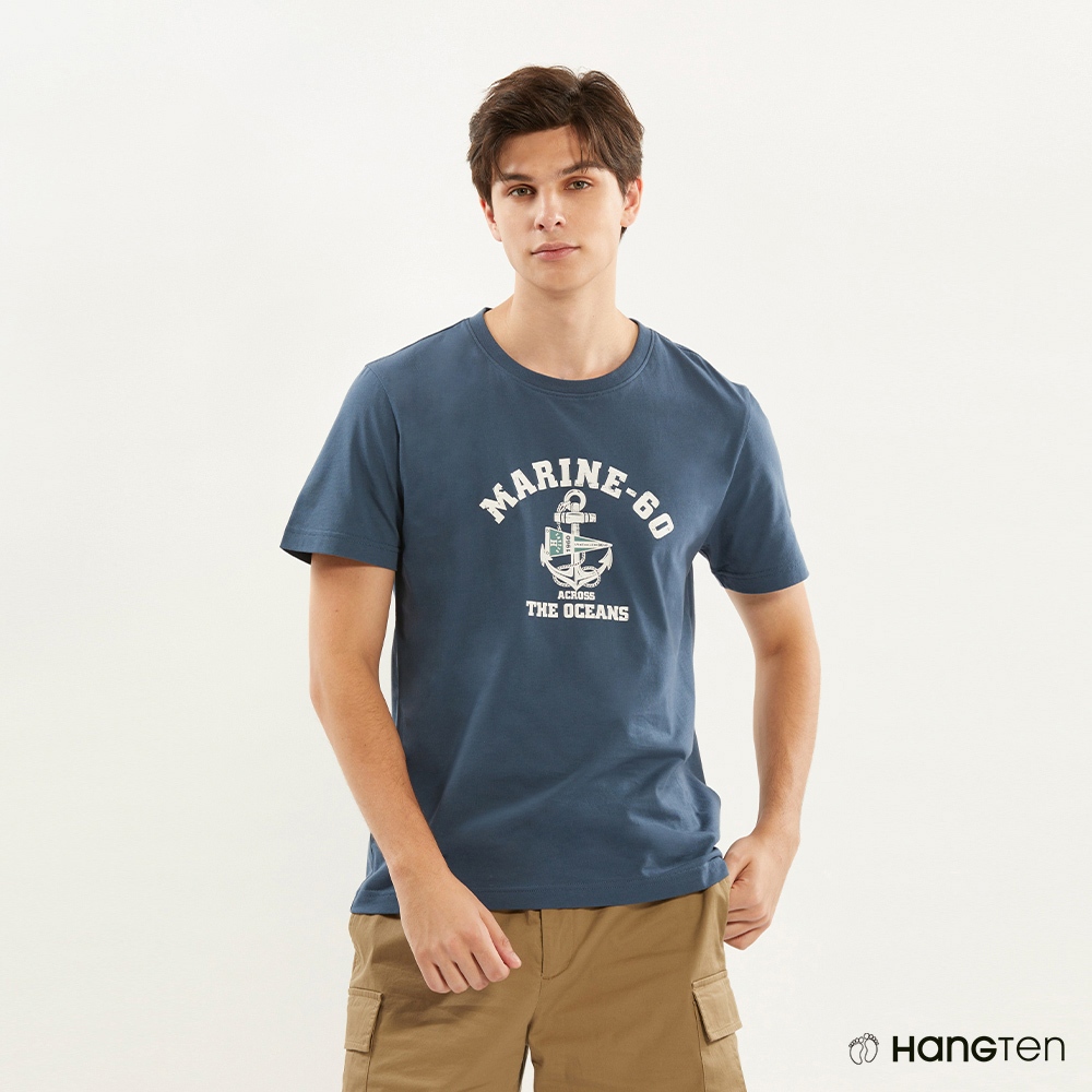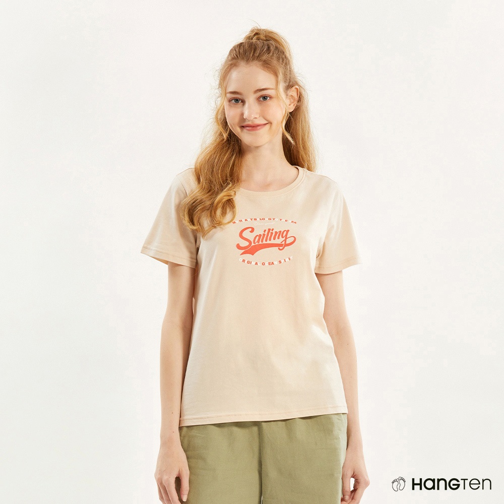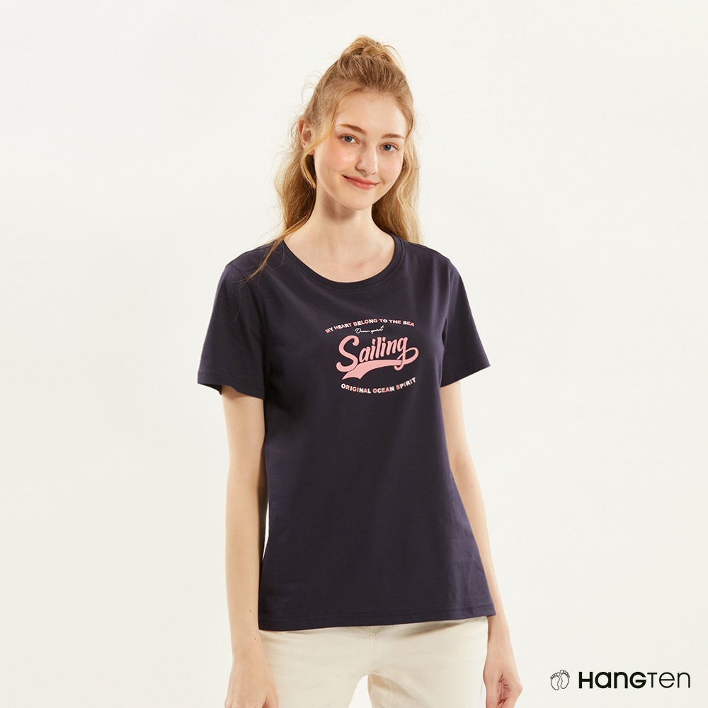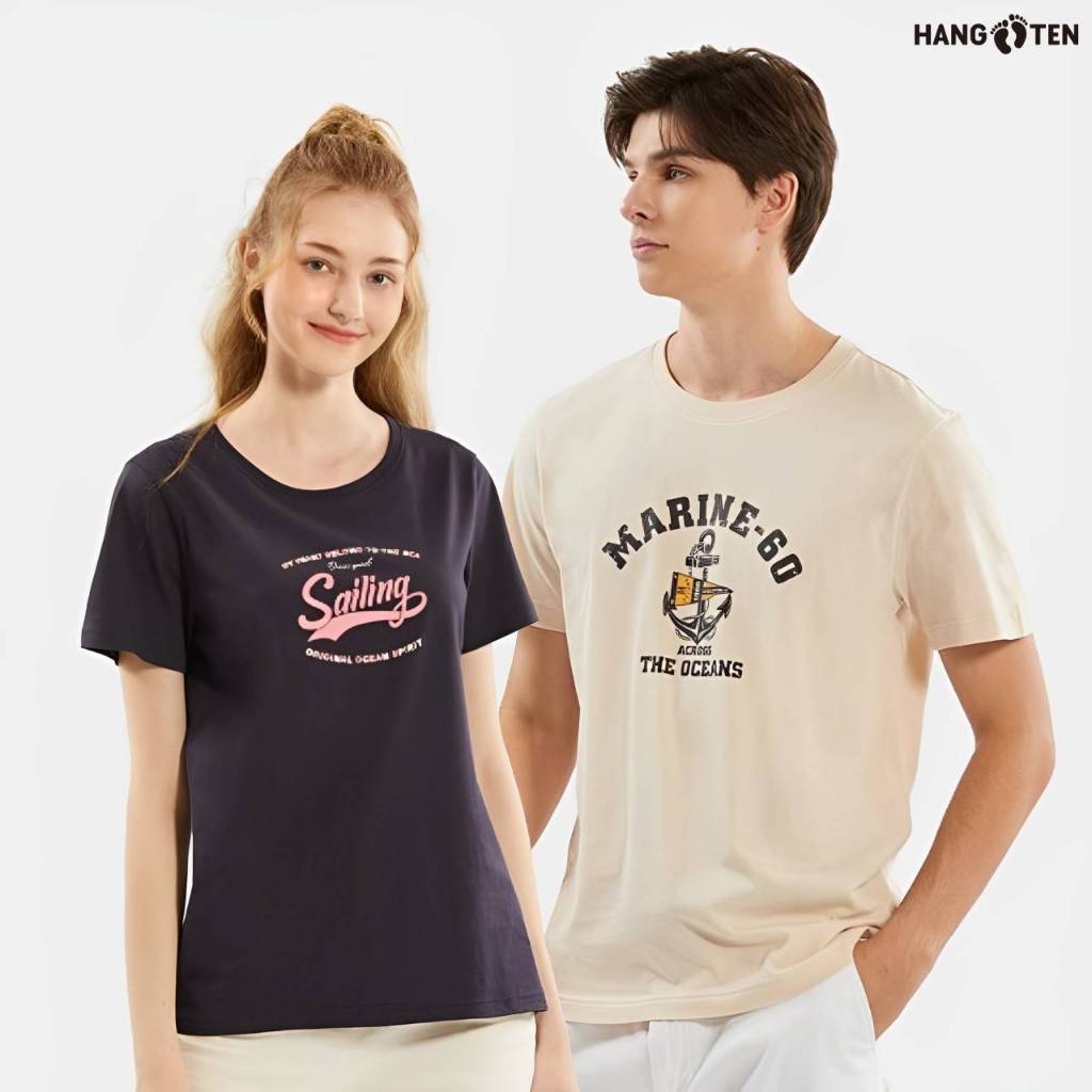 • 【Hang Ten】男女裝-純棉航海跳色文字印花短袖T恤(多款選)