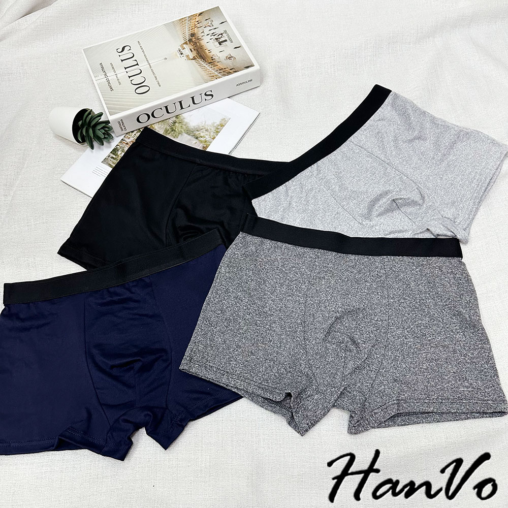 • 【HanVo】舒適純色質感柔軟男生內褲 獨立包裝 涼感透氣輕薄中腰內褲 男內褲 涼感內褲 內褲 B05-5015
