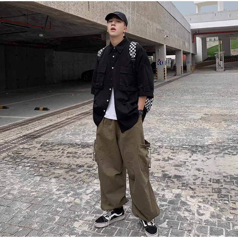 【K-2】五分袖 工裝襯衫 口袋 OVERSIZE 男女不拘 韓版 潮流 素面 寬鬆 短袖襯衫 情侶 襯衫【WC017】