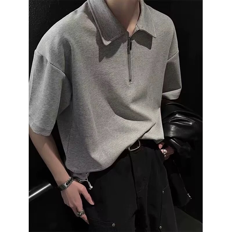 【K-2】CITYBOY 中拉鏈 POLO衫 短袖POLO衫 厚磅 落肩 寬鬆 短T 翻領 半拉鏈 情侶 韓國【W39】麻白色,M|麻白色,L|灰色,M|灰色,L|黑色,M|黑色,LPolo ShirtsK-2 Fashionboy