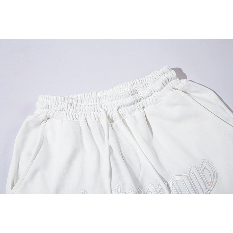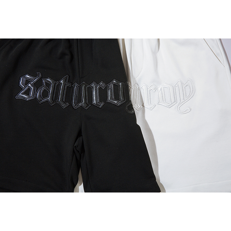 【K-2】SATUROD 皮革字體 設計感 運動短褲 五分褲 短褲 穿搭 中性 白色短褲 休閒【A19207】