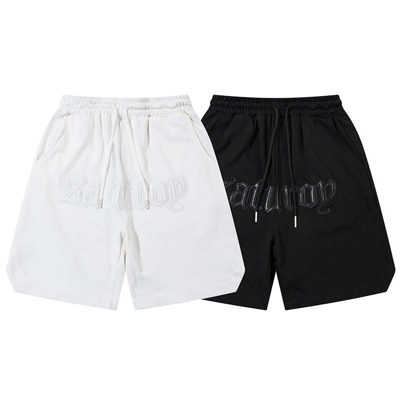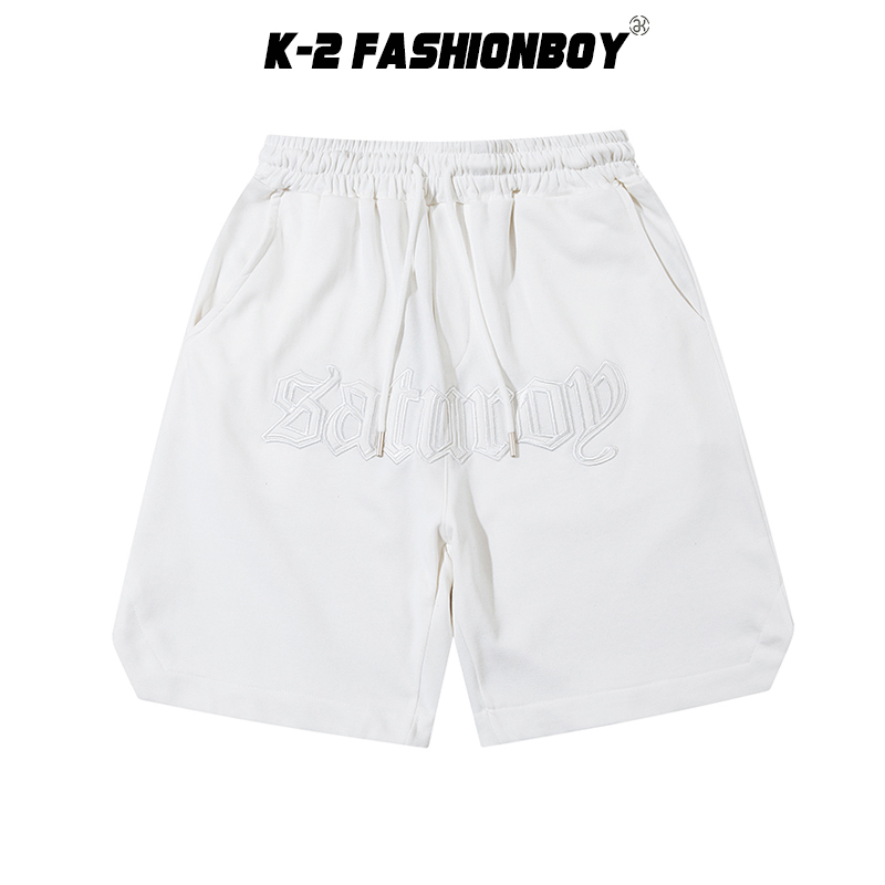 【K-2】SATUROD 皮革字體 設計感 運動短褲 五分褲 短褲 穿搭 中性 白色短褲 休閒【A19207】黑,L|黑,XL|黑,XXL|白,M|白,L|白,XL|白,XXL|黑,MK-2 Fashionboy