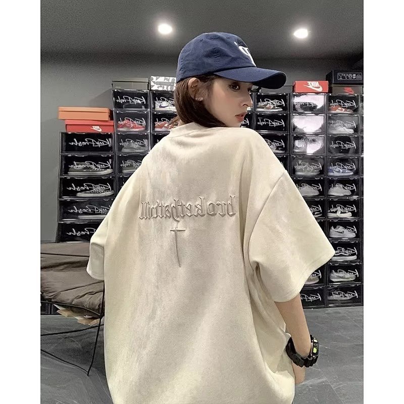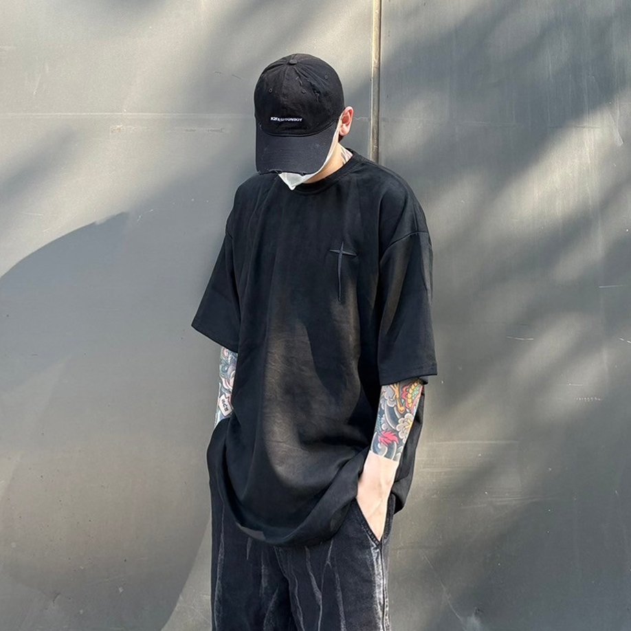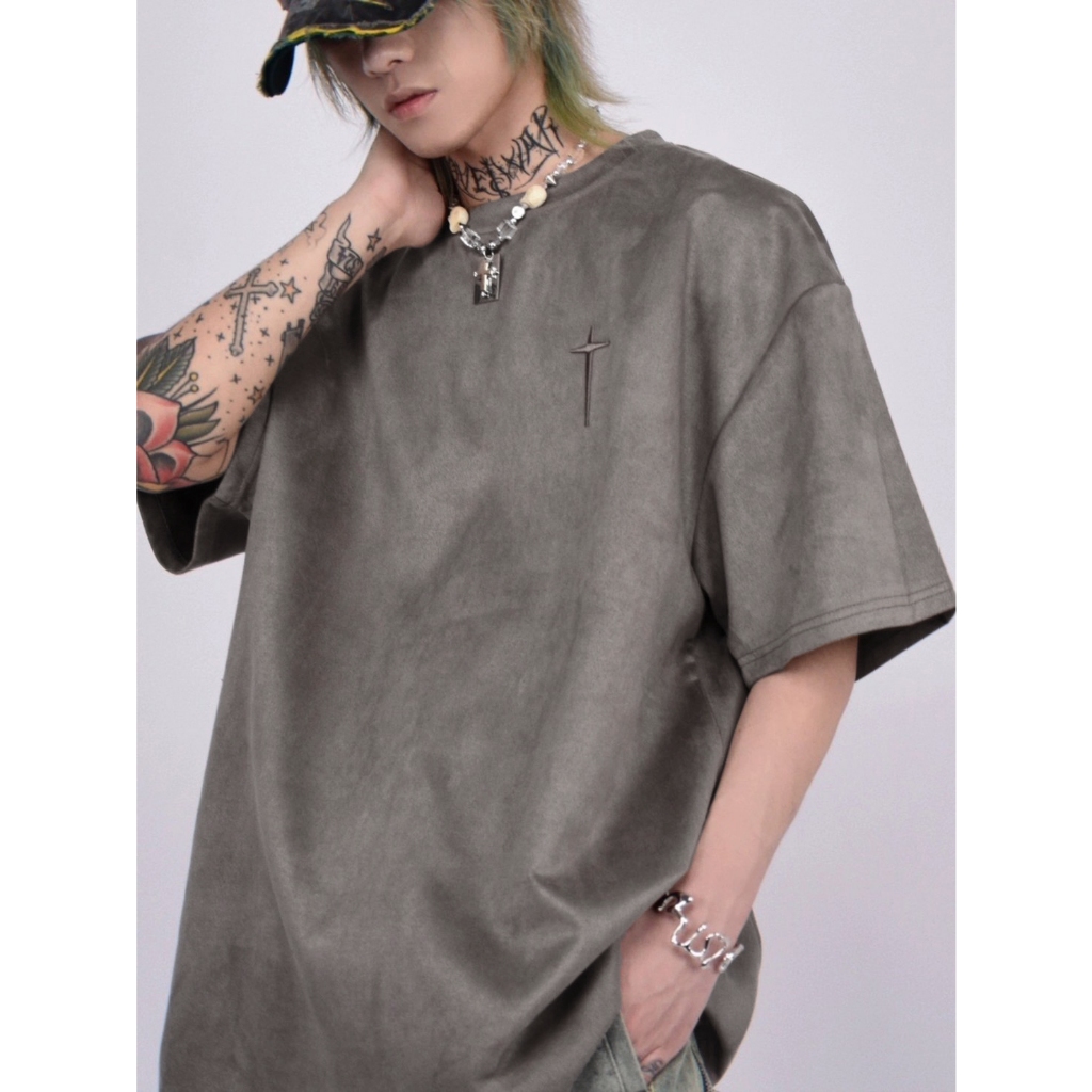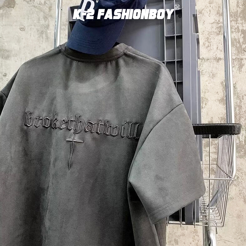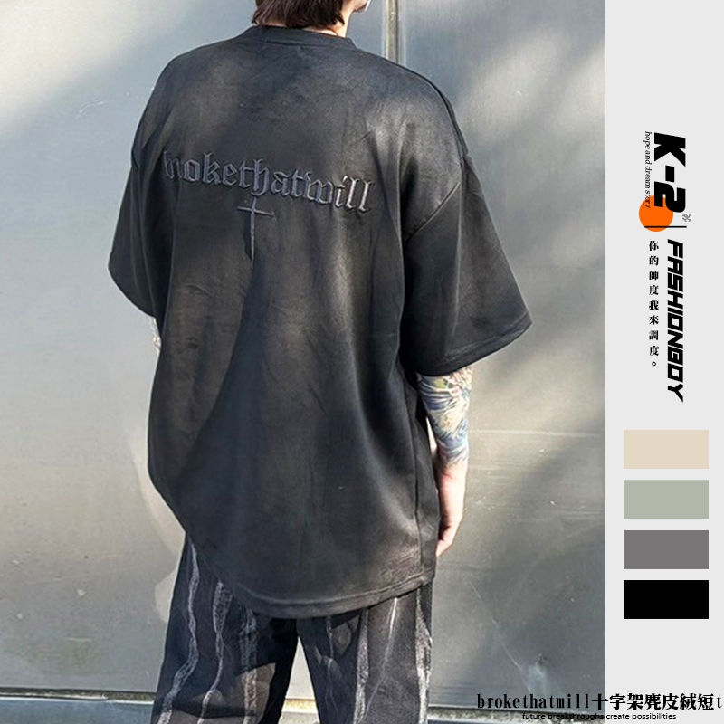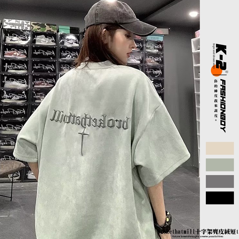 【K-2】brokethatmill 十字架 刺繡 立體 麂皮絨短T 寬鬆 落肩 高品質 短袖 復古 麂皮絨【KC66】奶茶杏,M|奶茶杏,L|淺綠,M|淺綠,L|銀狐灰,M|銀狐灰,L|黑色,M|黑色,LT-ShirtsK-2 Fashionboy
