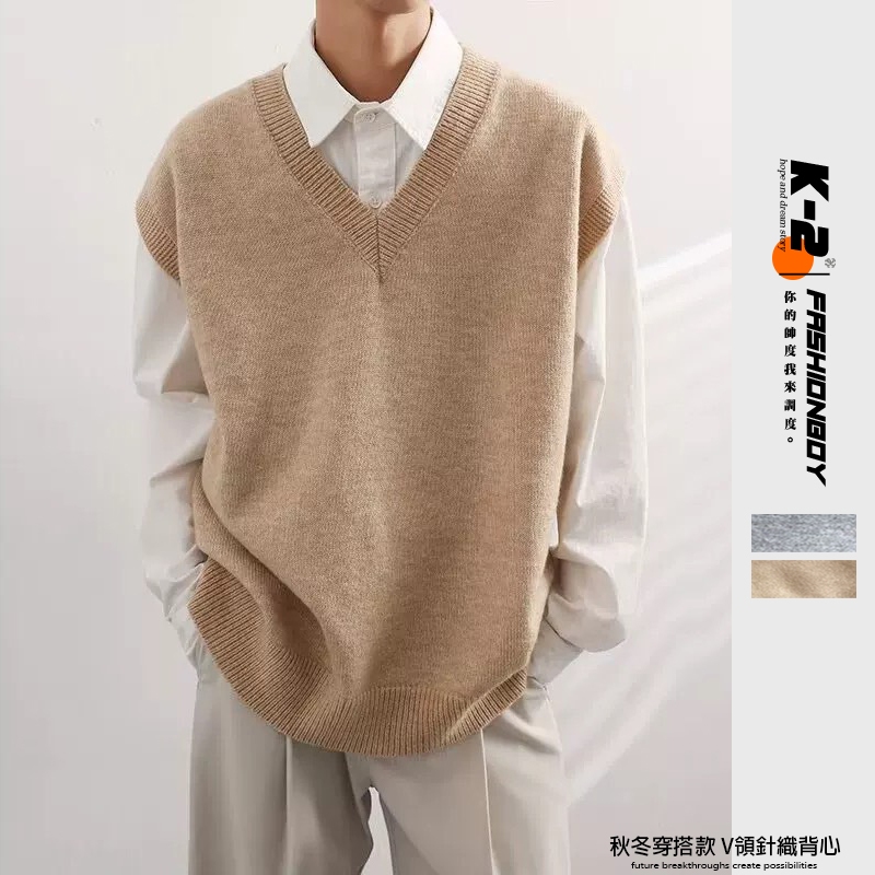 【K-2】CITYBOY 針織背心 V領背心 馬甲 小哥哥 背心 毛衣 情侶 男女不拘 街頭 秋冬必備【KD553】卡其色,M|卡其色,L|灰色,M|灰色,LK-2 Fashionboy