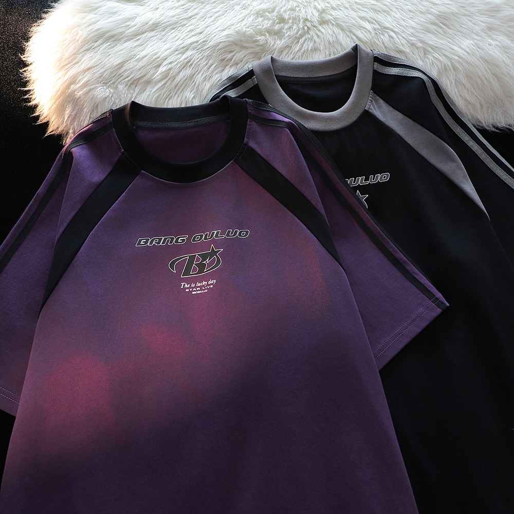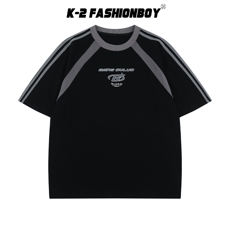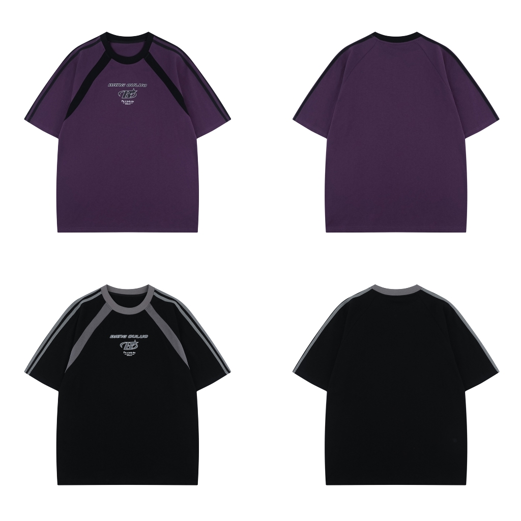 【K-2】BANG OULUO 賽車風 拼接 線條 潮流LOGO 高品質 B 短T 短袖上衣 復古 K2【J1221】紫色,M|紫色,L|紫色,XL|黑色,M|黑色,L|黑色,XLT-ShirtsK-2 Fashionboy