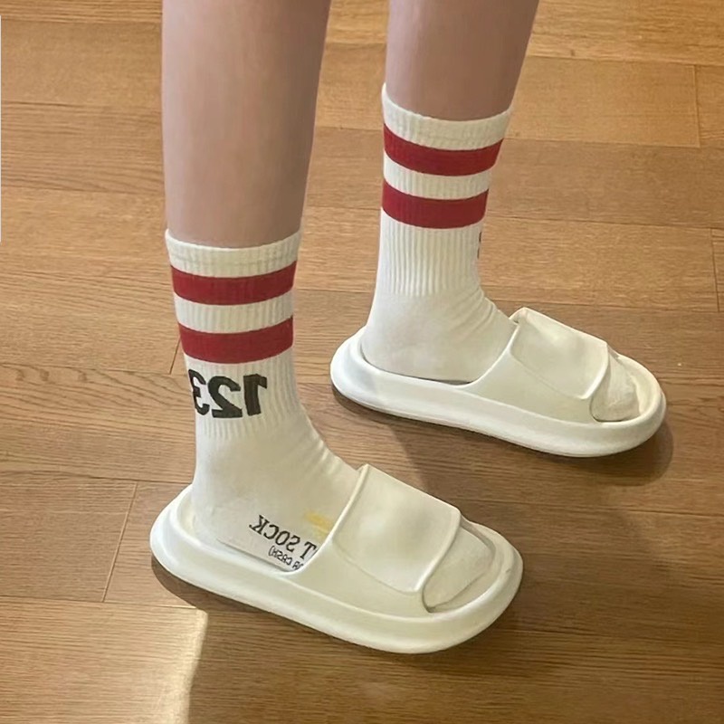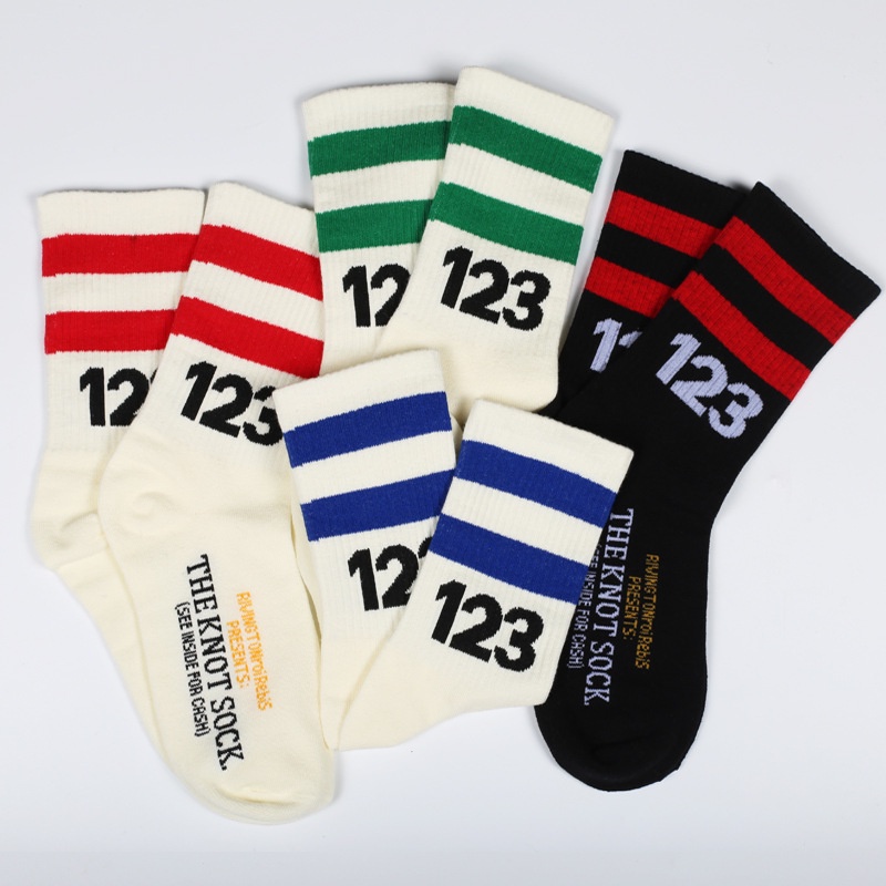 【K-2】CITYFASHION 123 線條襪 長襪 高筒襪 條紋襪 情侶 穿搭 外搭 襪子 襪【KM64】白綠|白藍|白紅|黑紅K-2 Fashionboy