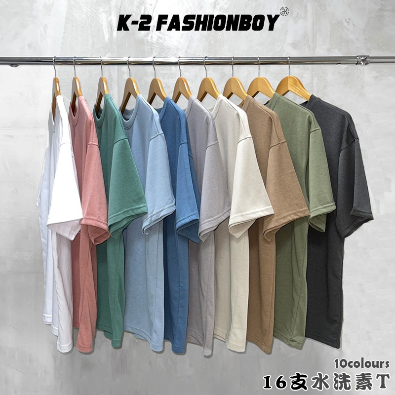 【K-2】MIT 16支 CITYBOY 高品質 素踢 精梳棉 10色 16支短T 大地色系 水洗素T 落肩 寬鬆 復古水洗黑|奶茶杏|寶寶藍|水洗灰|水洗卡其|水洗藍|水洗深灰|水洗軍綠|水洗綠|水洗紅T-ShirtsK-2 Fashionboy