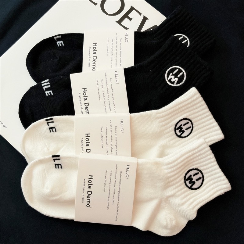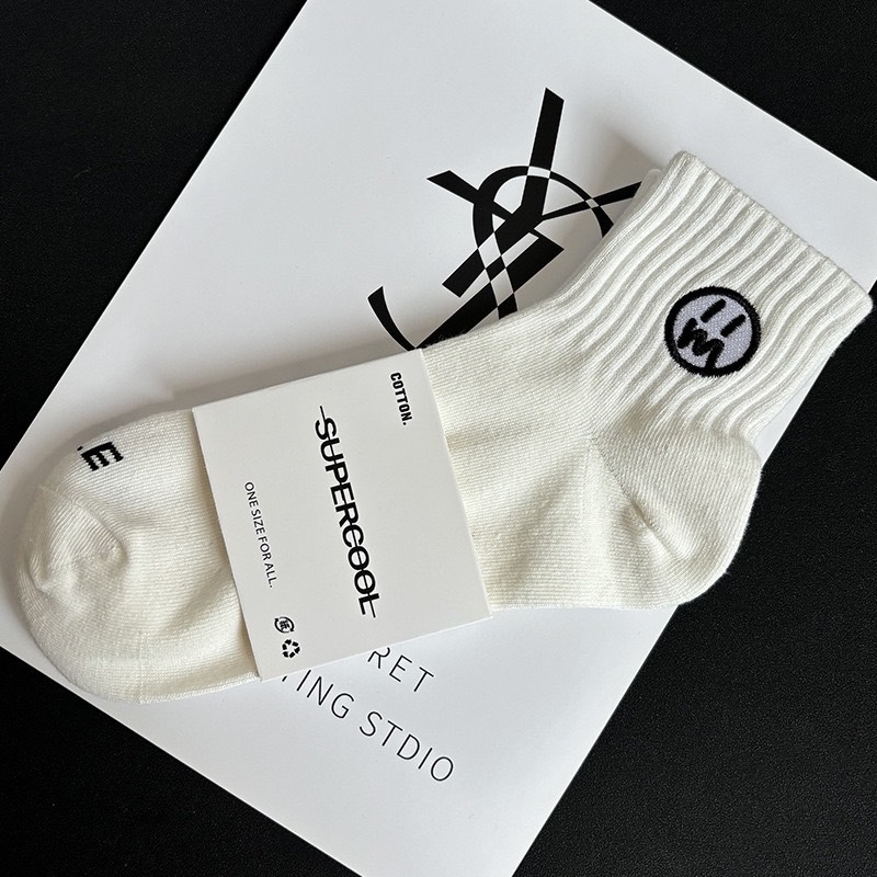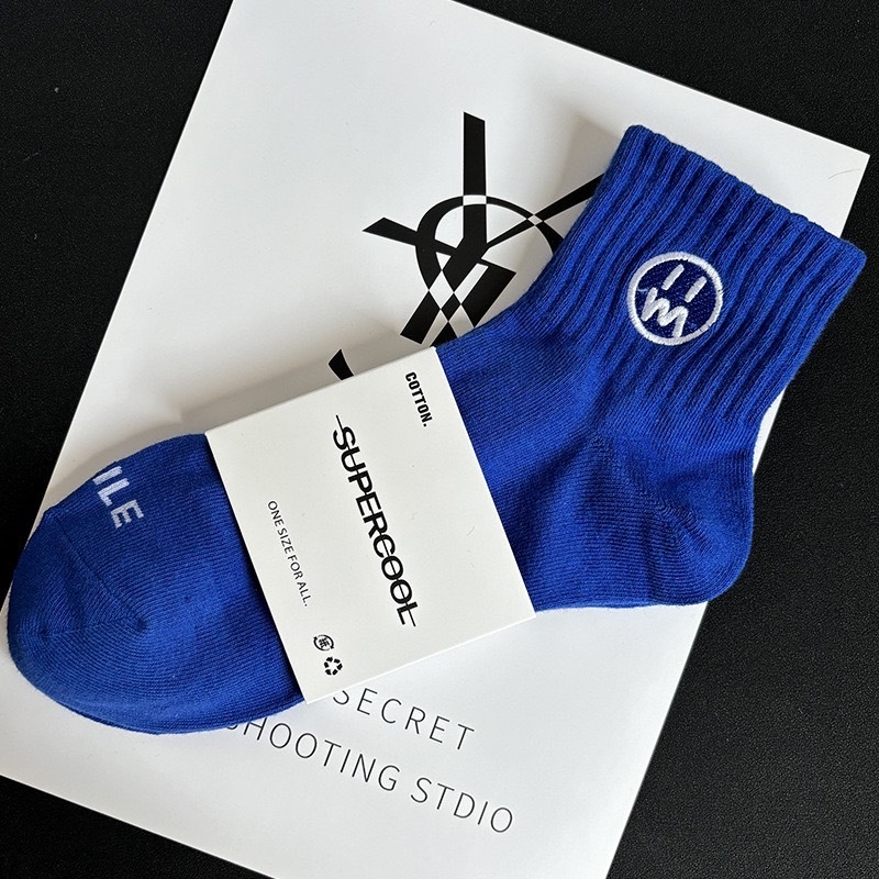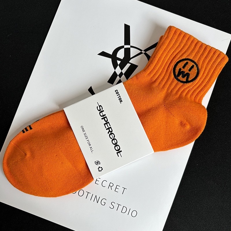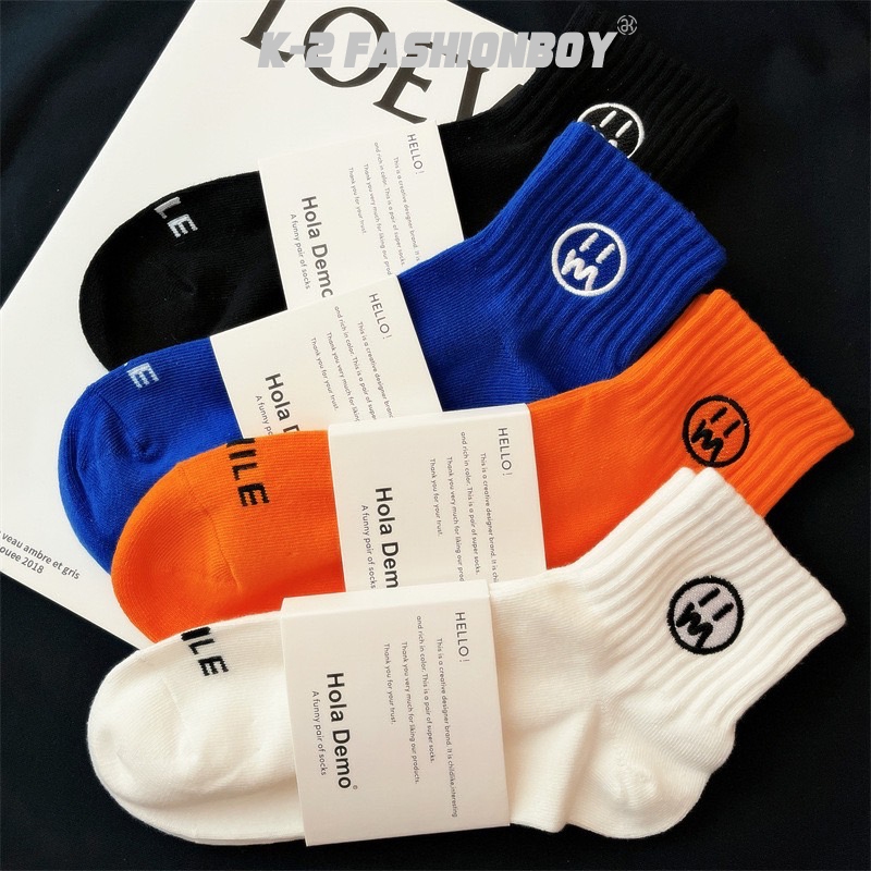 【K-2】刺繡 無言臉 中筒襪 男襪 女襪 棉襪 韓系中筒襪 休閒襪 素色襪 刺繡襪 運動襪 學生襪 襪子【KM135】寶藍色|橘色|白色|黑色K-2 Fashionboy