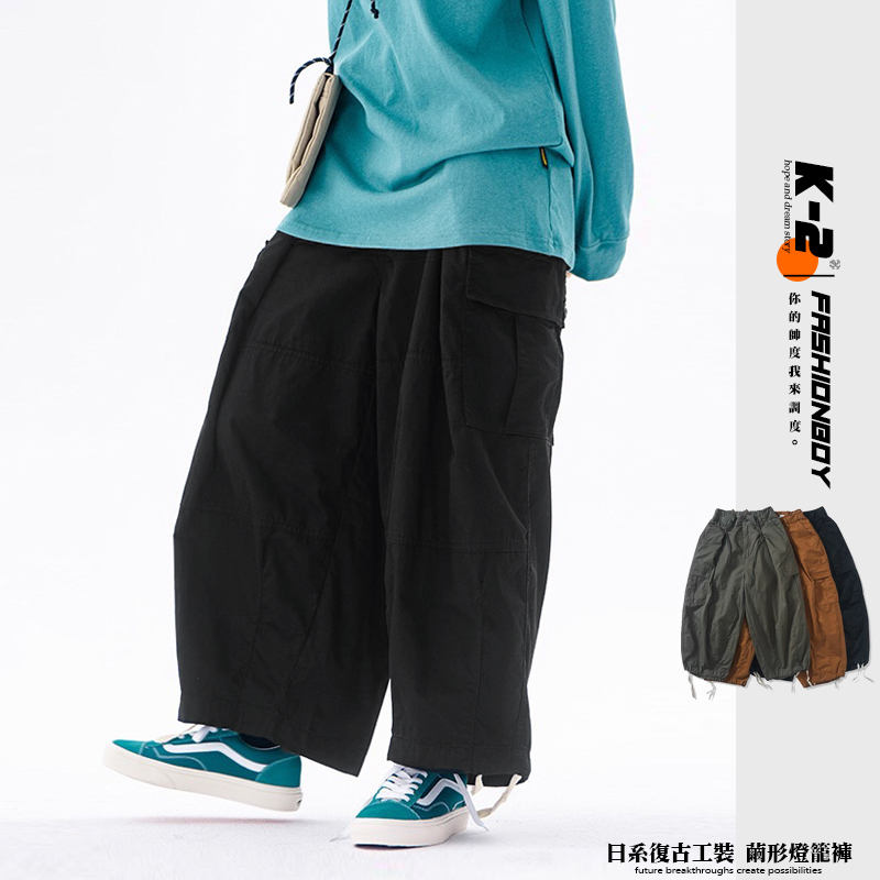 【K-2】日系復古 繭形 燈籠褲 工裝口袋 山系 寬鬆剪裁 工裝長褲 錐形 寬褲 老爹褲 古著長褲 美拉德【KC31】軍綠色,M|黑色,XL|咖啡棕,M|咖啡棕,L|軍綠色,L|軍綠色,XL|黑色,M|黑色,L|咖啡棕,XLCargoK-2 Fashionboy