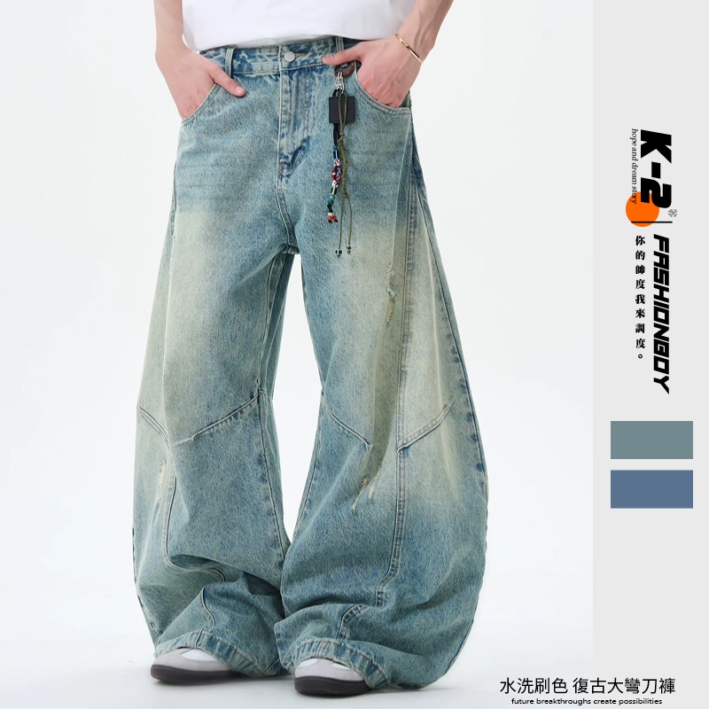 【K-2】水洗刷色 復古 大彎刀褲 牛仔長褲 牛仔褲 彎刀褲 穿搭 男女不拘 街頭 潮流 個性 情侶【JWHOA074】黃泥,S|黃泥,M|黃泥,L|黃泥,XL|黃泥,XXL|藍,S|藍,M|藍,L|藍,XL|藍,XXLPantsK-2 Fashionboy