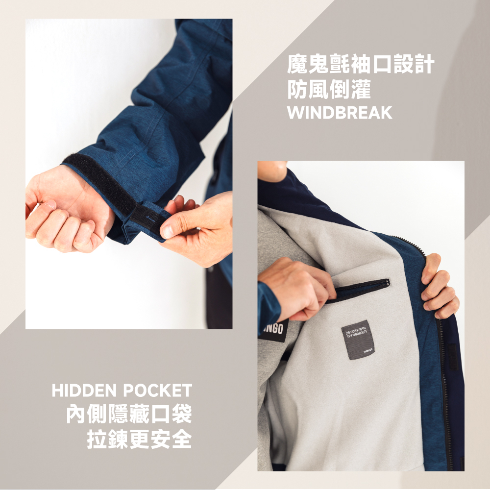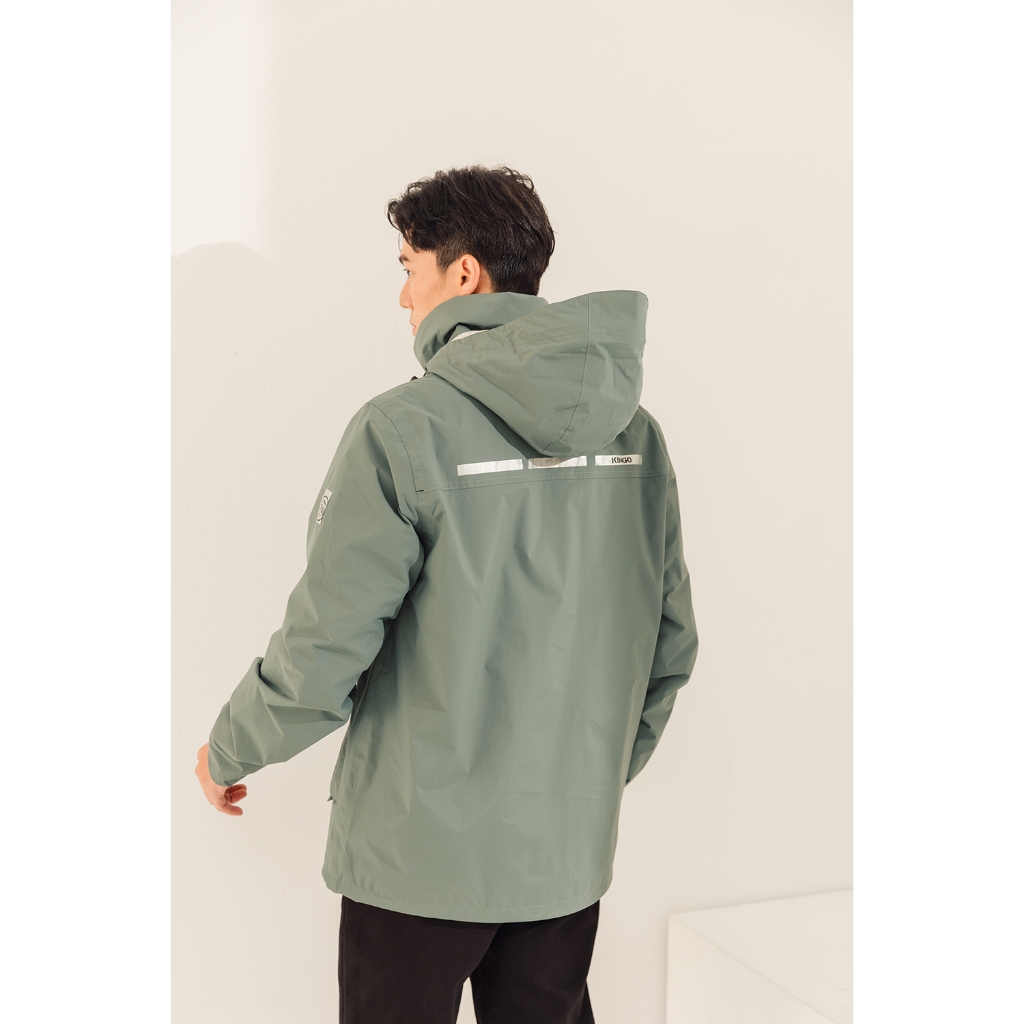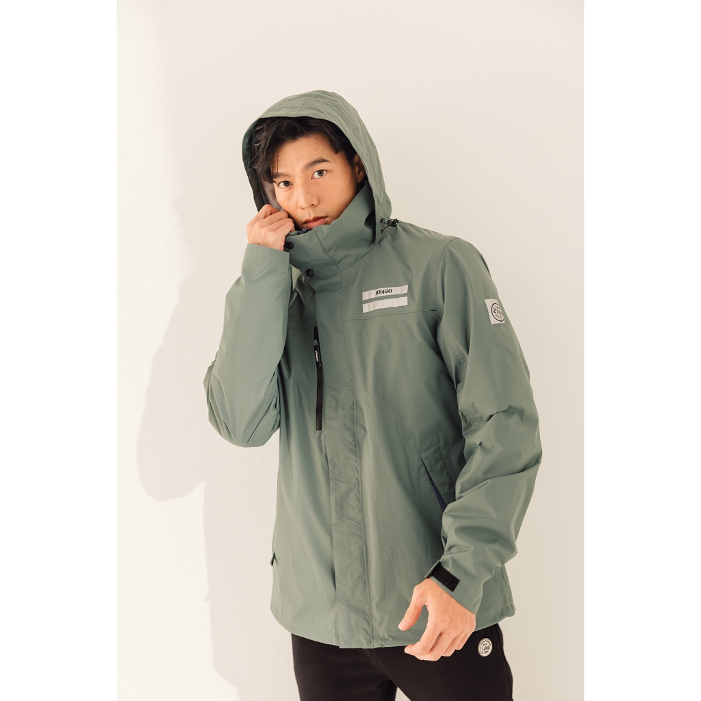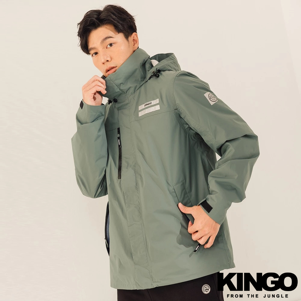 KINGO男款|橄綠色防水透氣連帽衝鋒衣