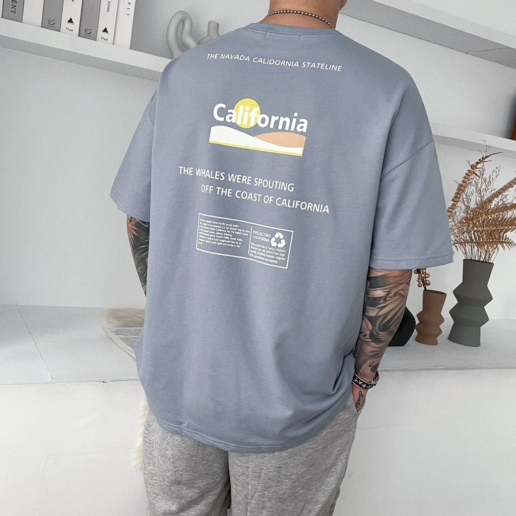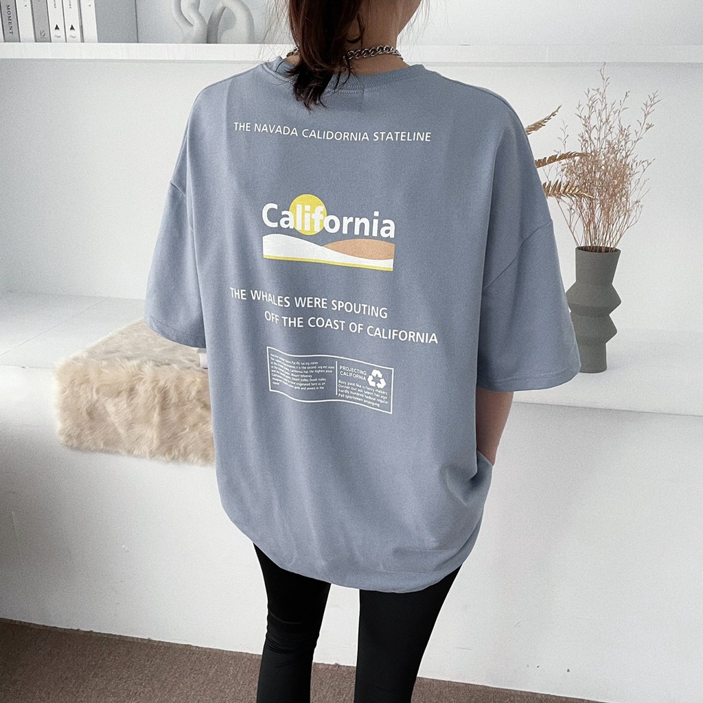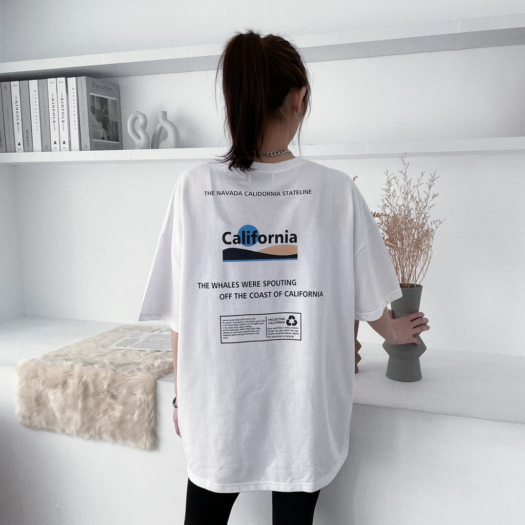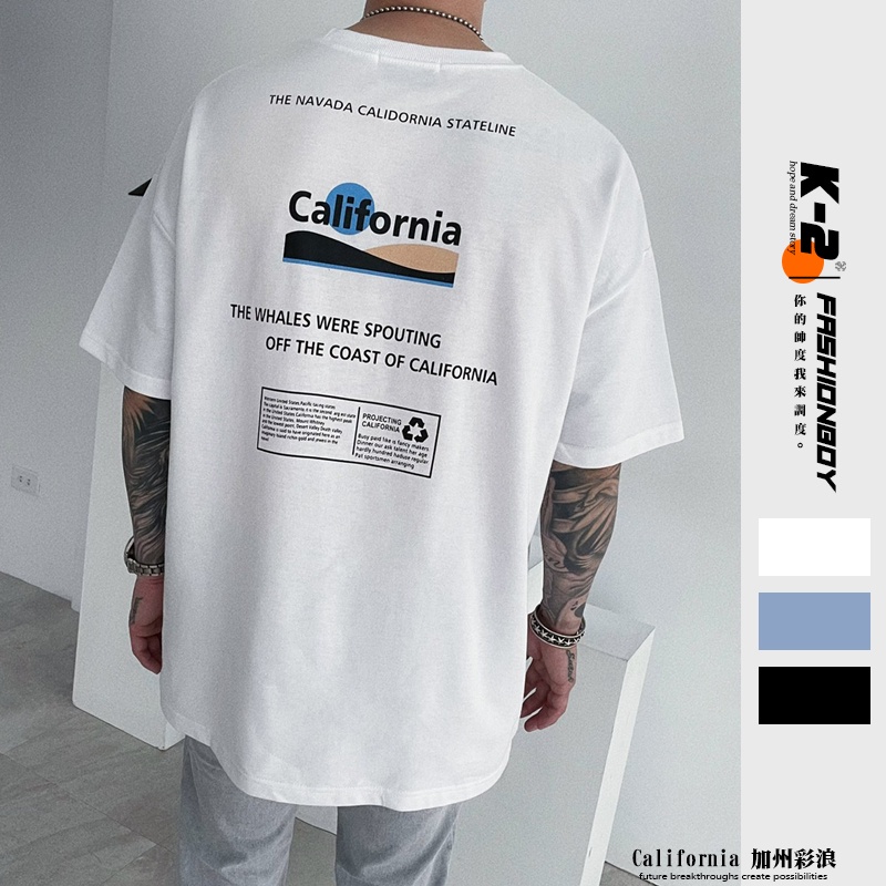 【K-2】韓國 California 加州 短袖 短T 細絨布 彩浪 小插圖 落肩 寬鬆 前後Logo 情侶【K600】白色,M|白色,L|黑色,M|黑色,L|灰藍色,M|灰藍色,LT-ShirtsK-2 Fashionboy