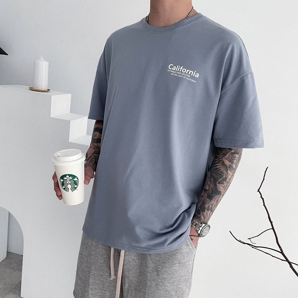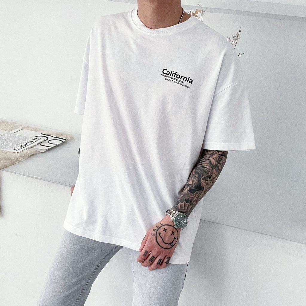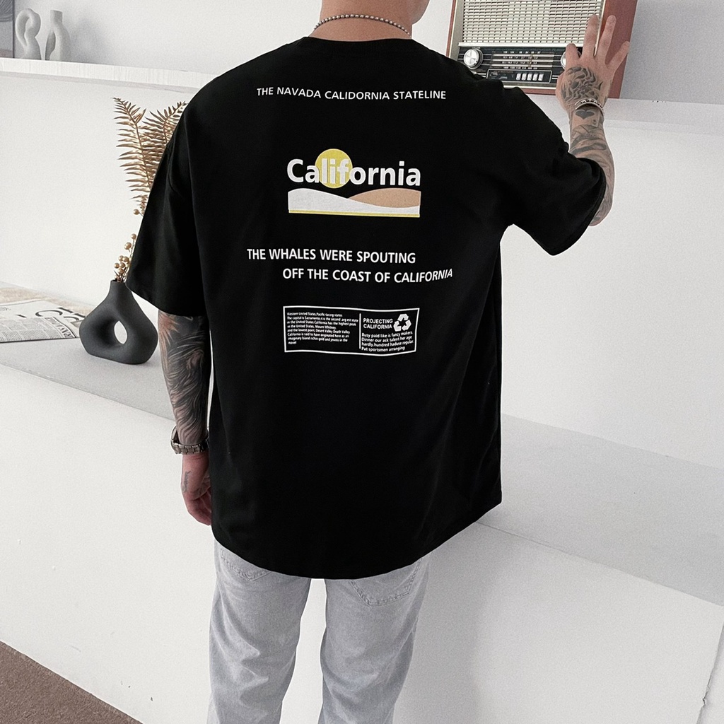 【K-2】韓國 California 加州 短袖 短T 細絨布 彩浪 小插圖 落肩 寬鬆 前後Logo 情侶【K600】白色,M|白色,L|黑色,M|黑色,L|灰藍色,M|灰藍色,LT-ShirtsK-2 Fashionboy