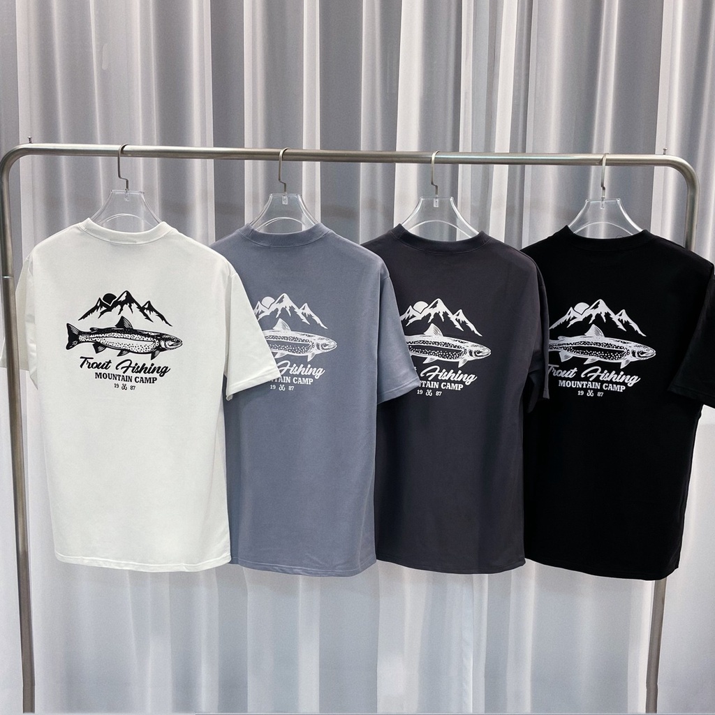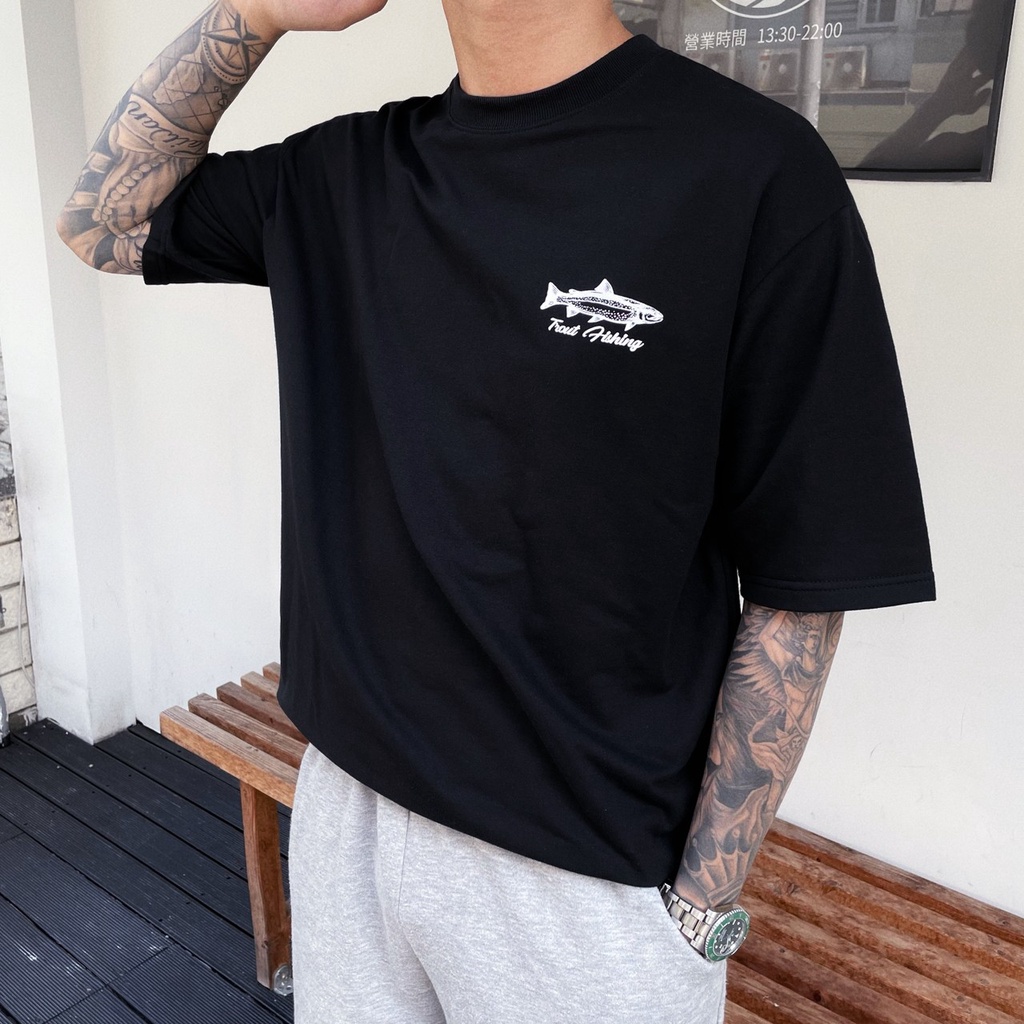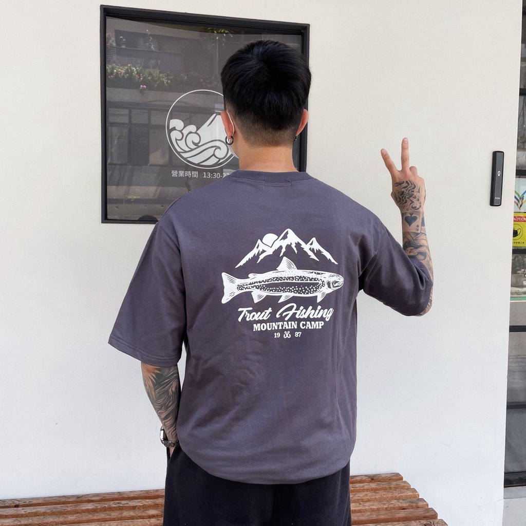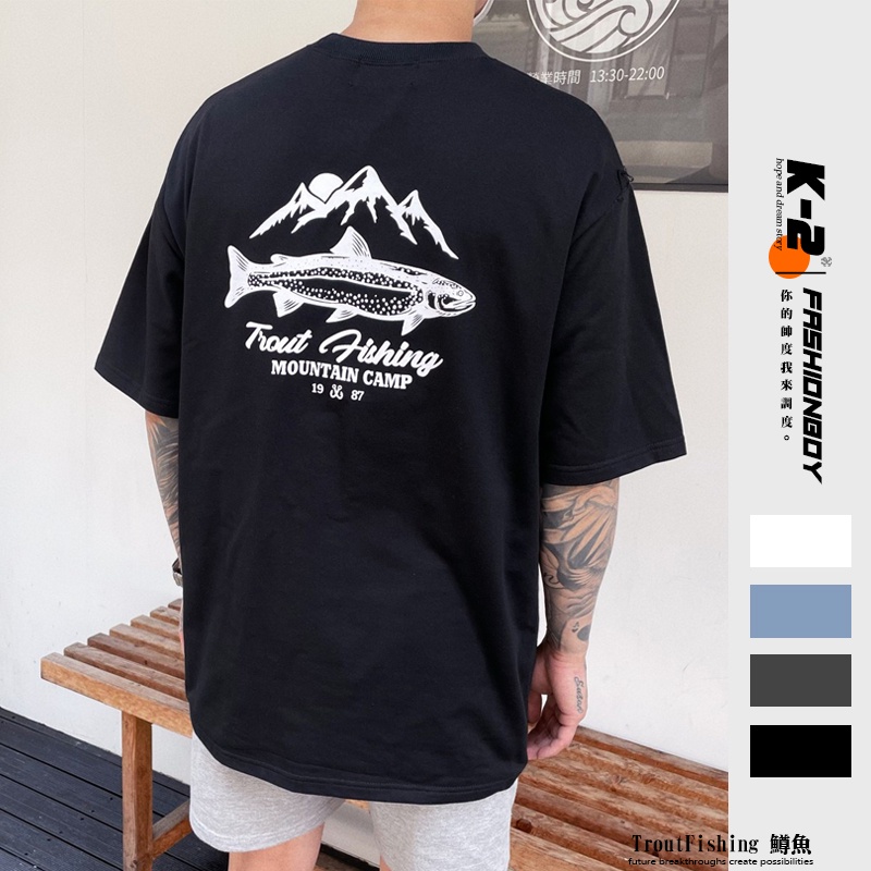 【K-2】鱒魚 露營 野營釣魚 海釣 細絨棉 短袖 重磅 上衣 落肩 寬鬆 男女不拘 韓國T 情侶 韓國新貨【K503】深灰色,L|灰藍色,M|灰藍色,L|白色,M|白色,L|黑色,M|黑色,L|深灰色,MT-ShirtsK-2 Fashionboy