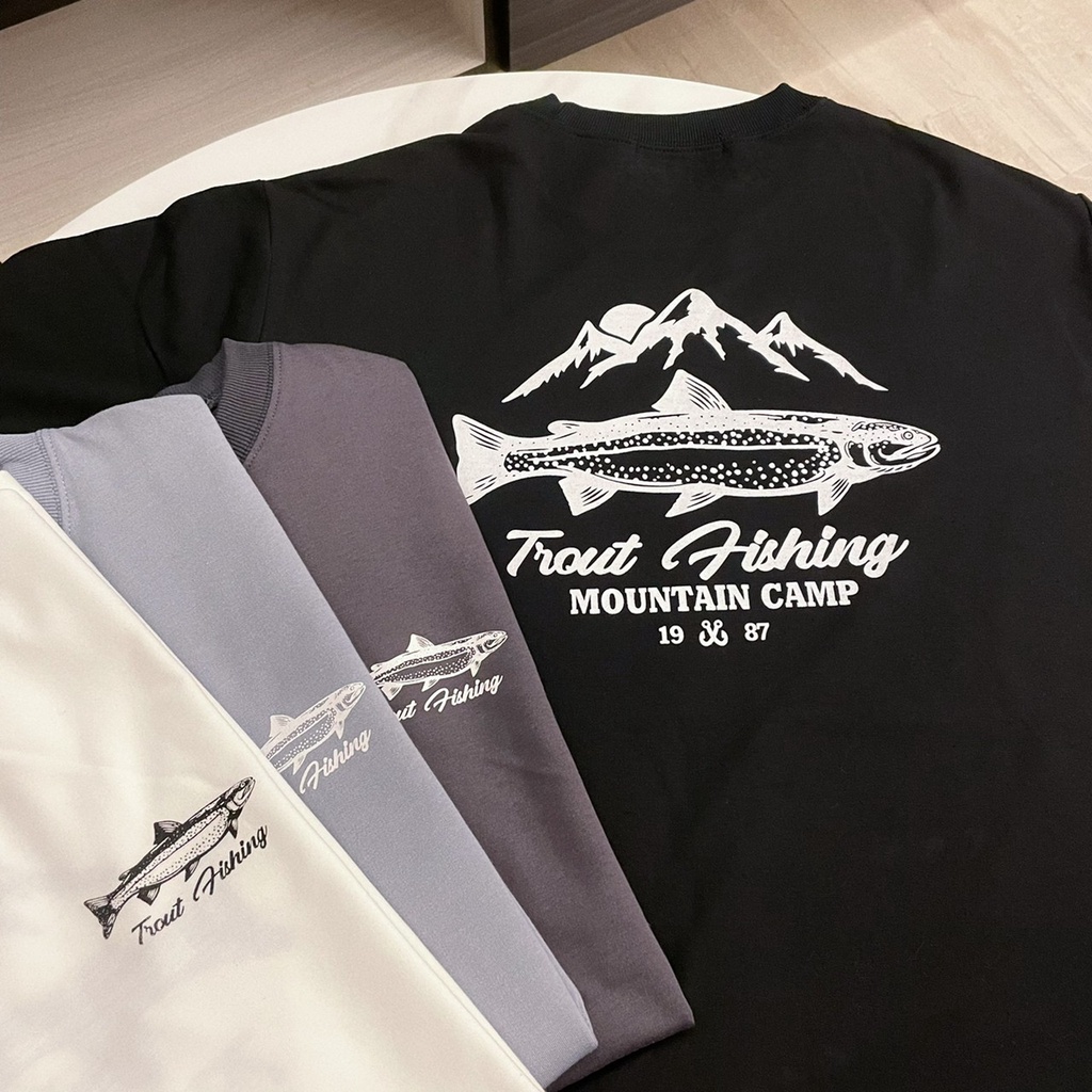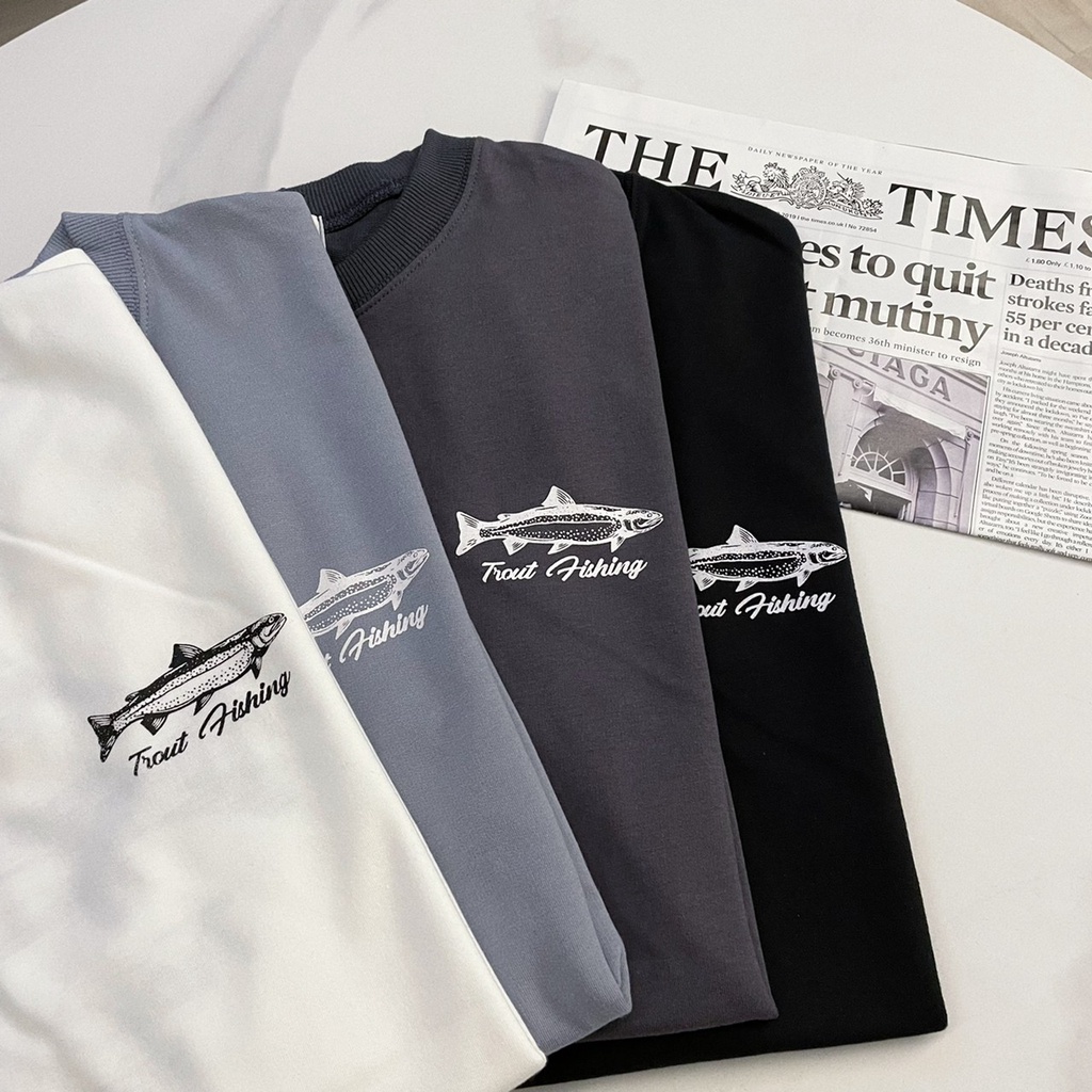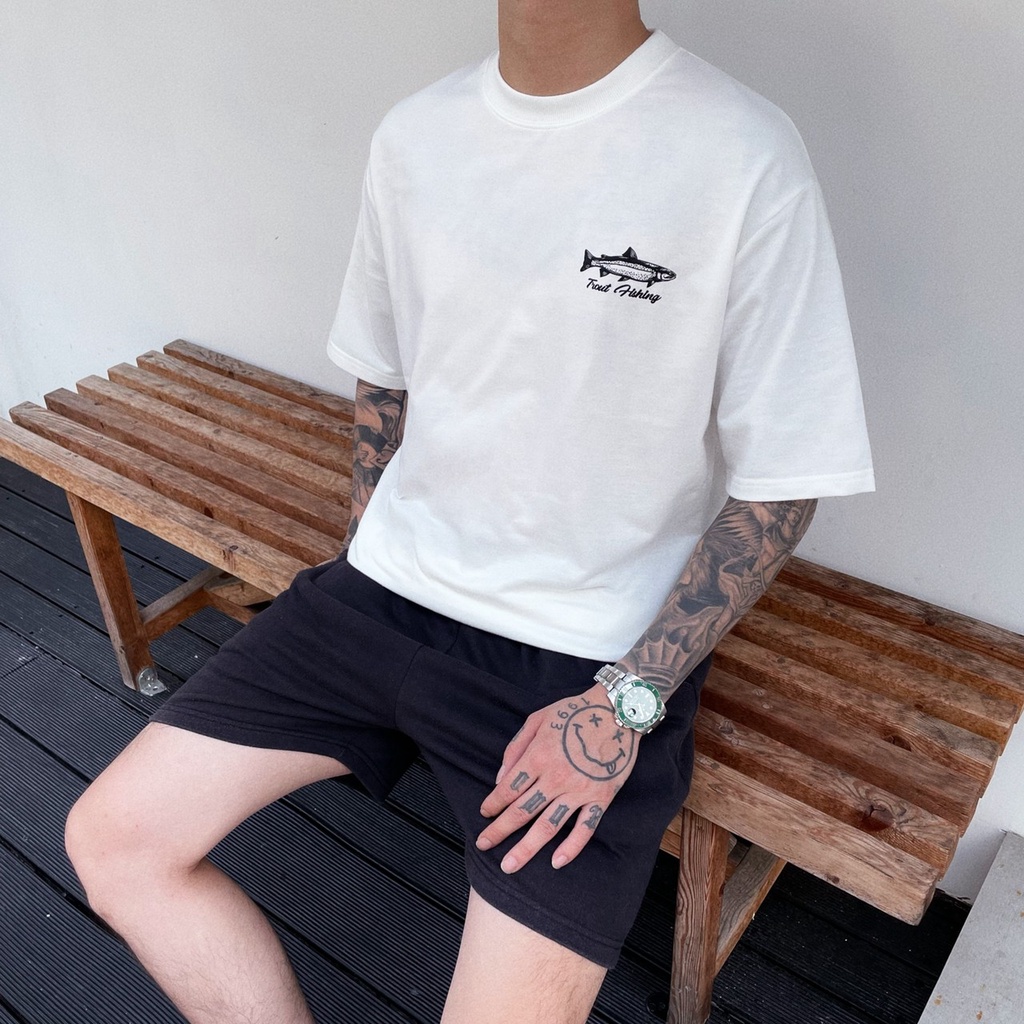 【K-2】鱒魚 露營 野營釣魚 海釣 細絨棉 短袖 重磅 上衣 落肩 寬鬆 男女不拘 韓國T 情侶 韓國新貨【K503】深灰色,L|灰藍色,M|灰藍色,L|白色,M|白色,L|黑色,M|黑色,L|深灰色,MT-ShirtsK-2 Fashionboy