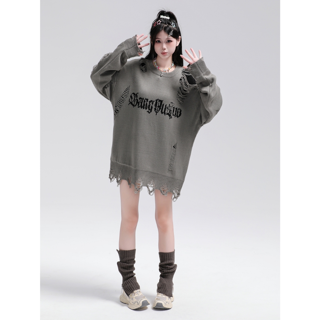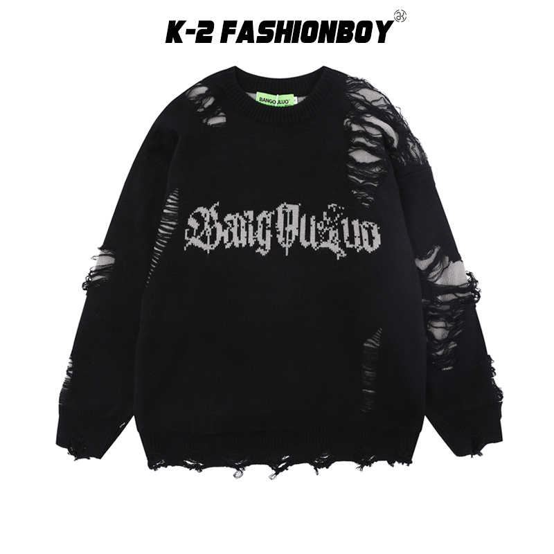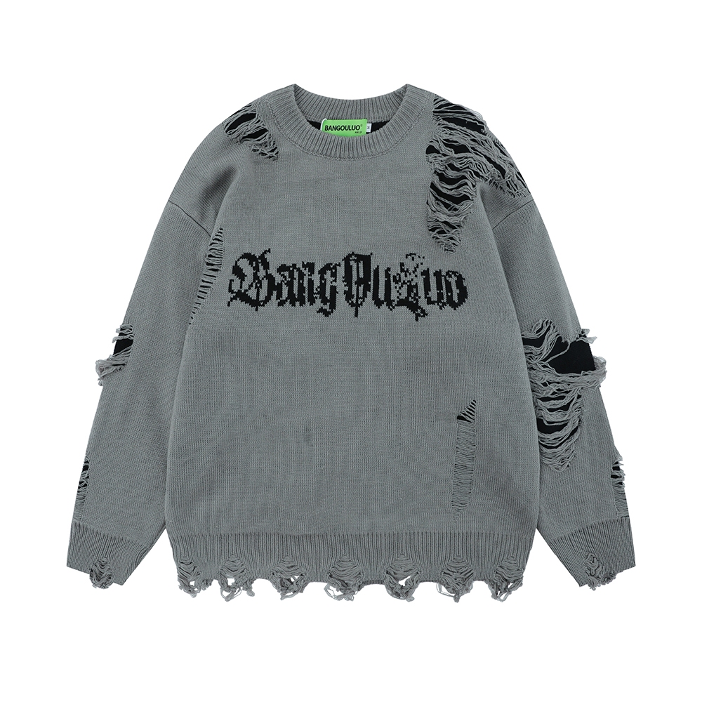【K-2】BANGOULUO 超級大破壞 假兩件 LOGO 針織毛衣 長袖毛衣 情侶穿搭 寬鬆 保暖【D4739】黑,M|黑,L|黑,XL|灰,M|灰,L|灰,XLK-2 Fashionboy