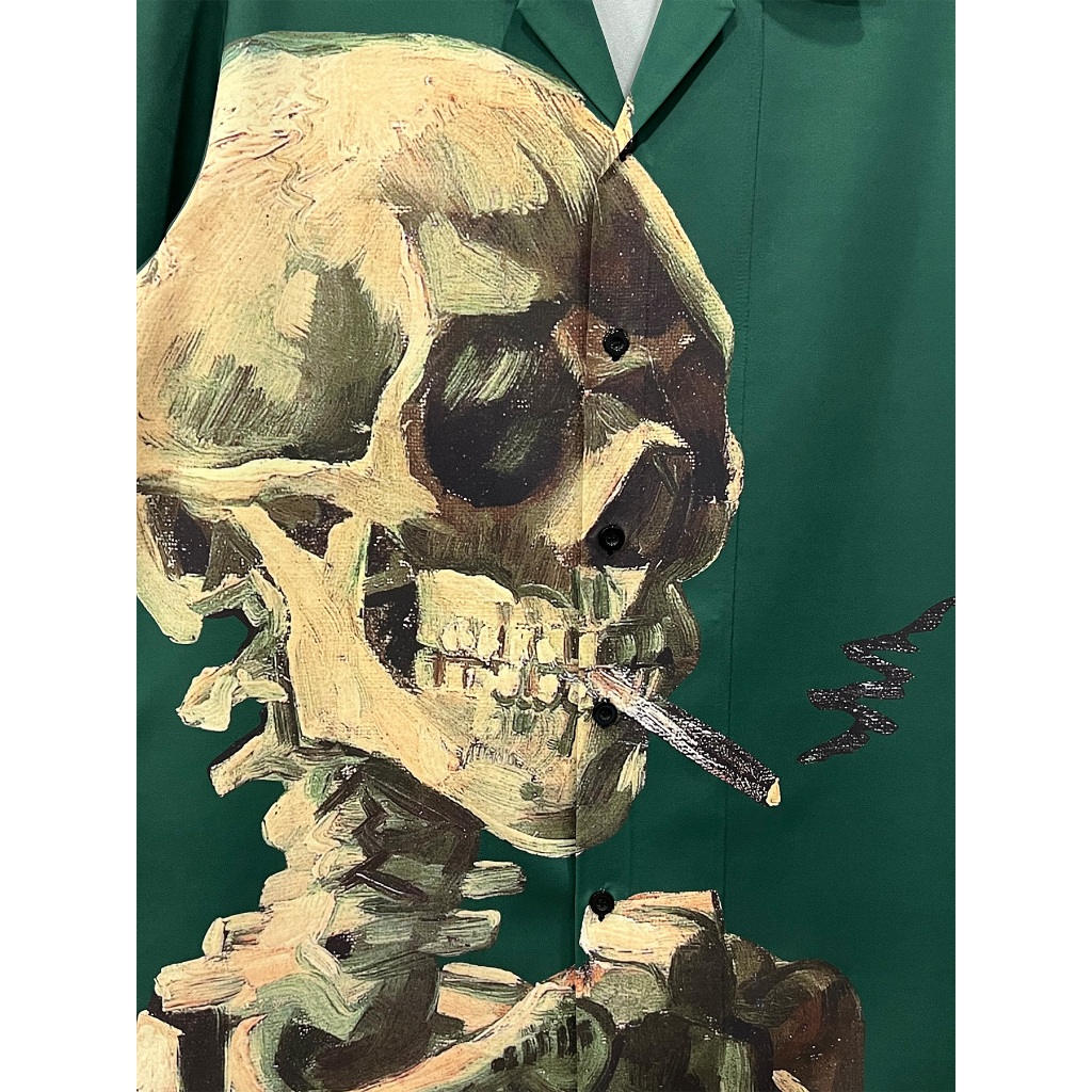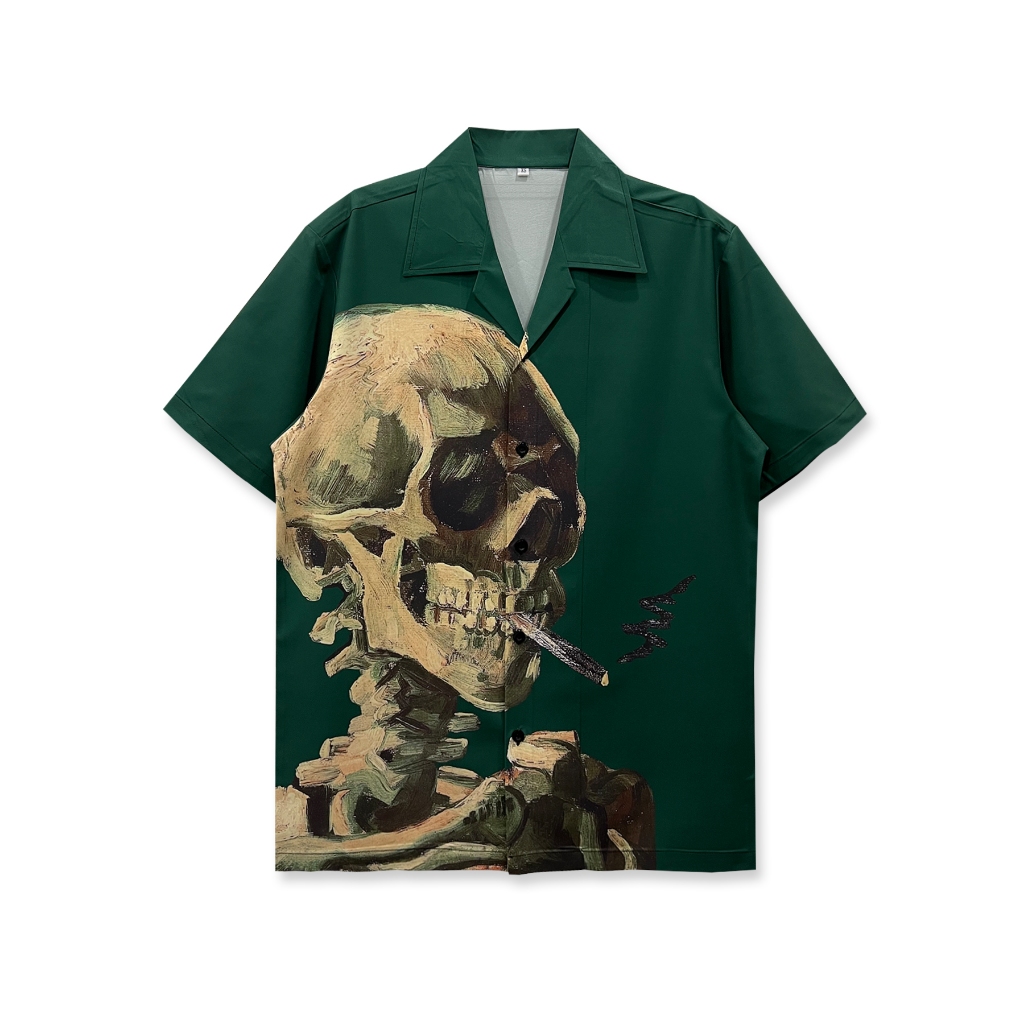 【K-2】骷顱頭 油畫 繪畫感 綠色 短袖襯衫 個性 帥氣 男女不拘 藝術 暗黑穿搭 街頭 中性【JXK63】M|L|XL|XXLShirtsK-2 Fashionboy