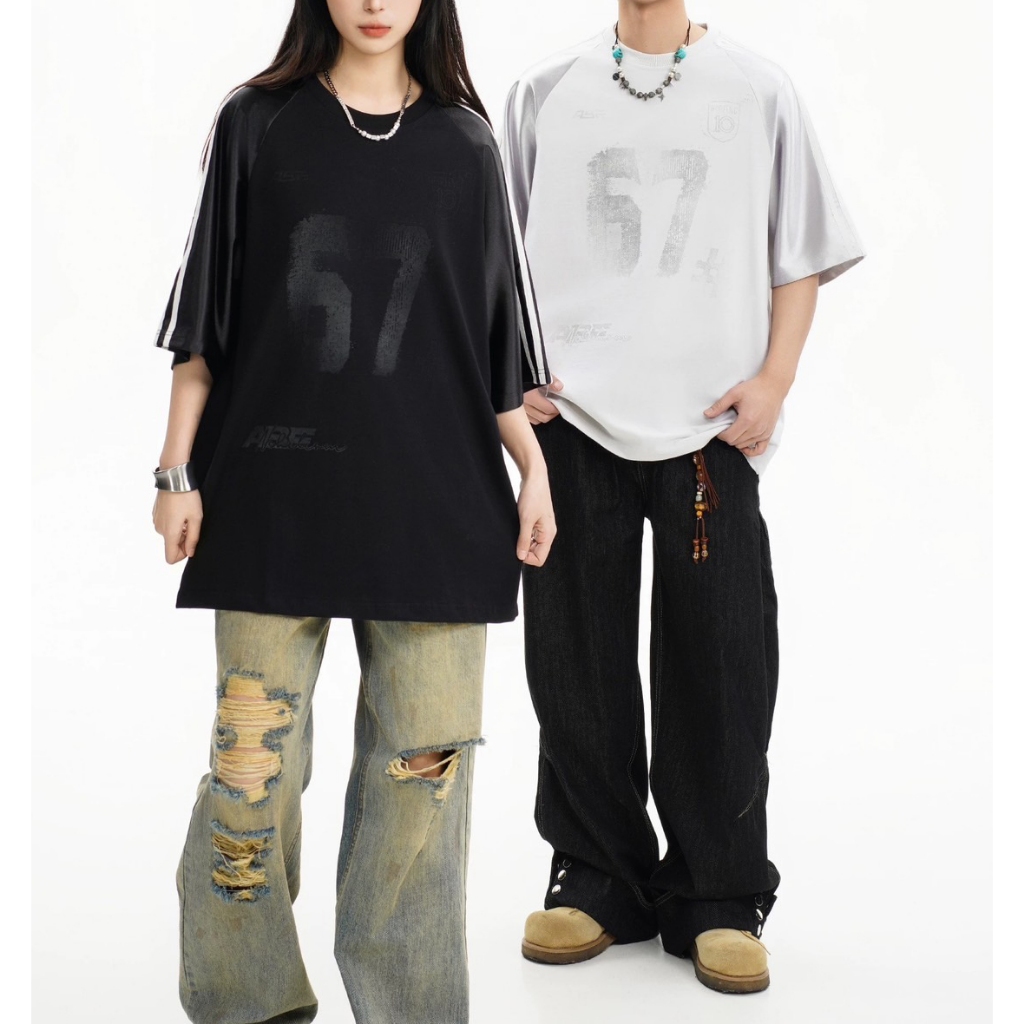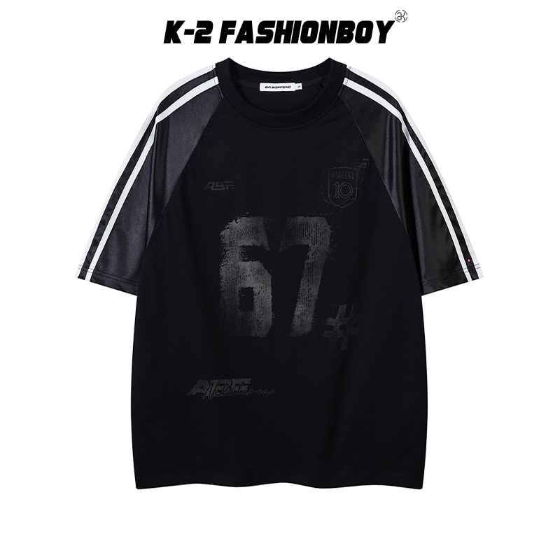 【K-2】拼接 手袖 設計 數字 67 短袖上衣 個性 穿搭 短T 運動 休閒 男女不拘 賽車風 偏帥【JD107】黑,M|黑,L|黑,XL|黑,XXL|白,M|白,L|白,XL|白,XXLT-ShirtsK-2 Fashionboy