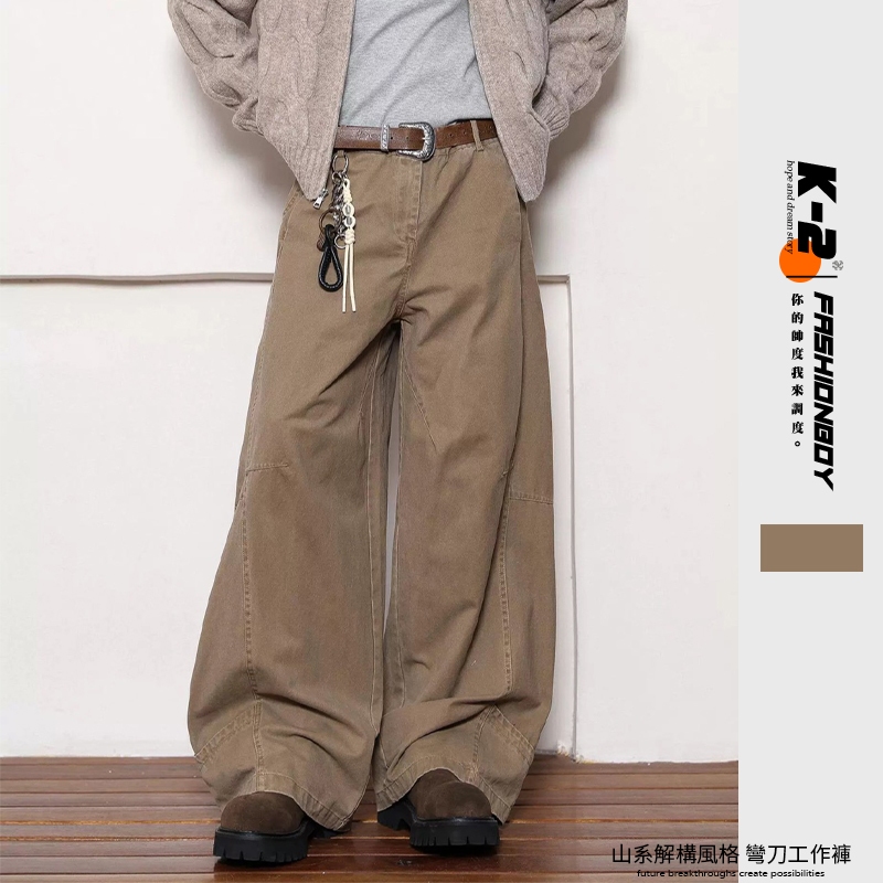 【K-2】山系彎刀褲 解構設計 工裝風格 卡其色 工作褲 寬褲 闊腿褲 休閒長褲 穿搭 褲子 Y2K K【JB0091】M|L|XL|XXLCargoK-2 Fashionboy
