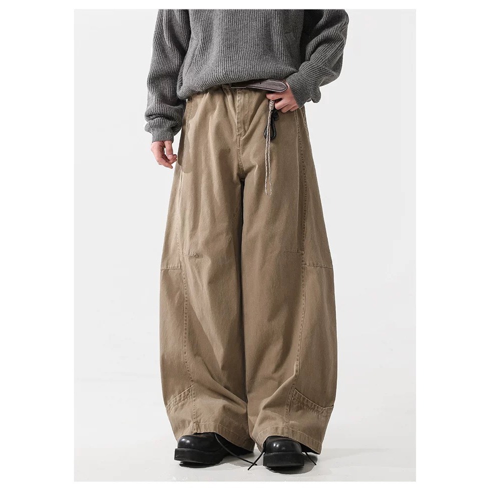 【K-2】山系彎刀褲 解構設計 工裝風格 卡其色 工作褲 寬褲 闊腿褲 休閒長褲 穿搭 褲子 Y2K K【JB0091】