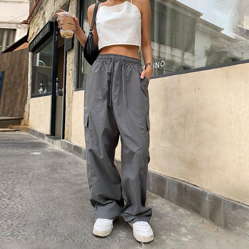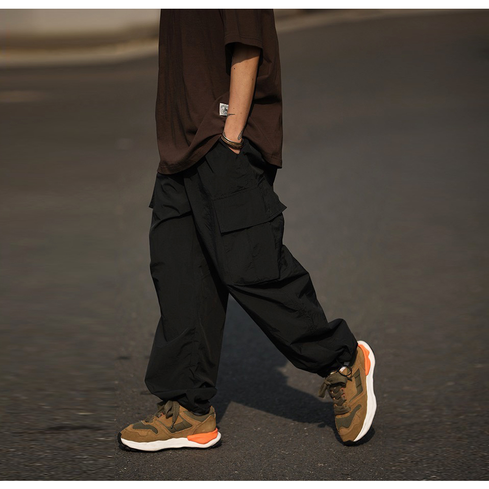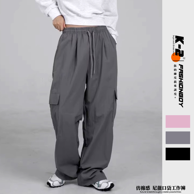 【K-2】日系 仿棉感 尼龍 口袋 寬褲 工作褲 CITYBOY 速乾 工裝長褲 束腳褲 衝鋒褲 休閒長褲【KD156】灰色,M|灰色,L|黑色,M|黑色,LCargoK-2 Fashionboy