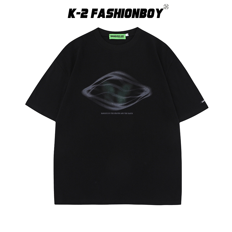 【K-2】簡約圖案 能量波動 模糊線條 綠色光芒 寬鬆短T 短袖上衣 穿搭 男女不拘 休閒【H2462】黑,M|黑,L|黑,XL|白,M|白,L|白,XLT-ShirtsK-2 Fashionboy