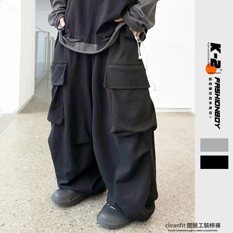 【K-2】cleanfit 闊腿工裝棉褲 大口袋 工作褲 棉長褲 束口褲 縮口褲 棉褲 休閒長褲 日系 寬褲【KC67】灰色,M|灰色,L|黑色,M|黑色,LCargoK-2 Fashionboy