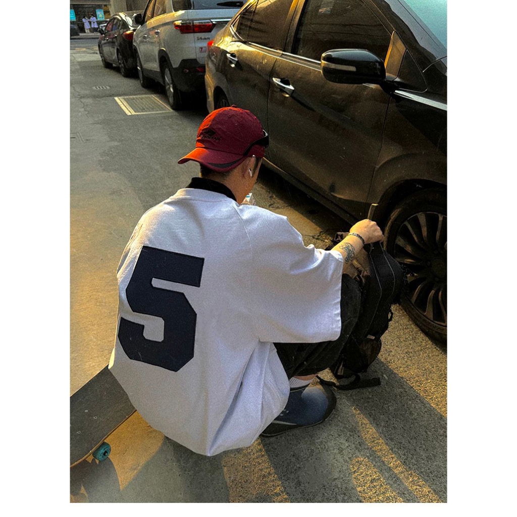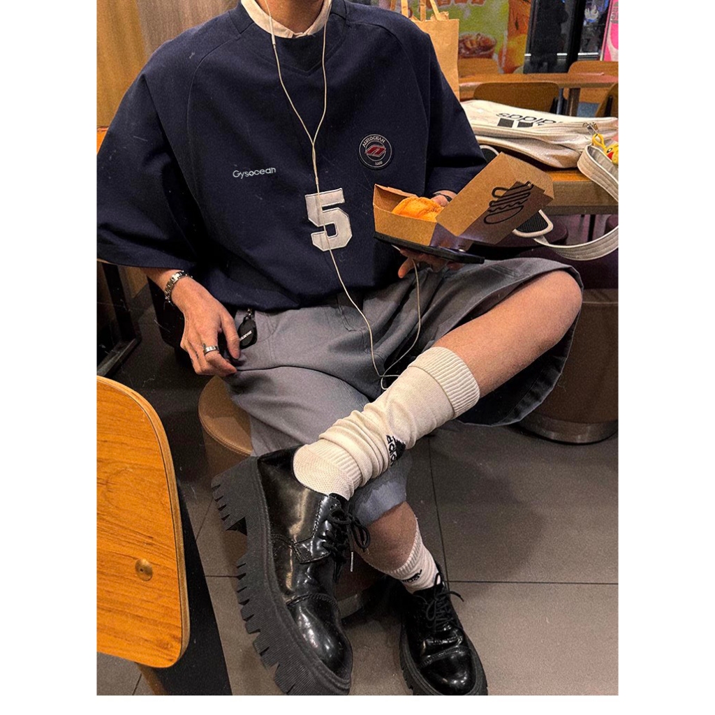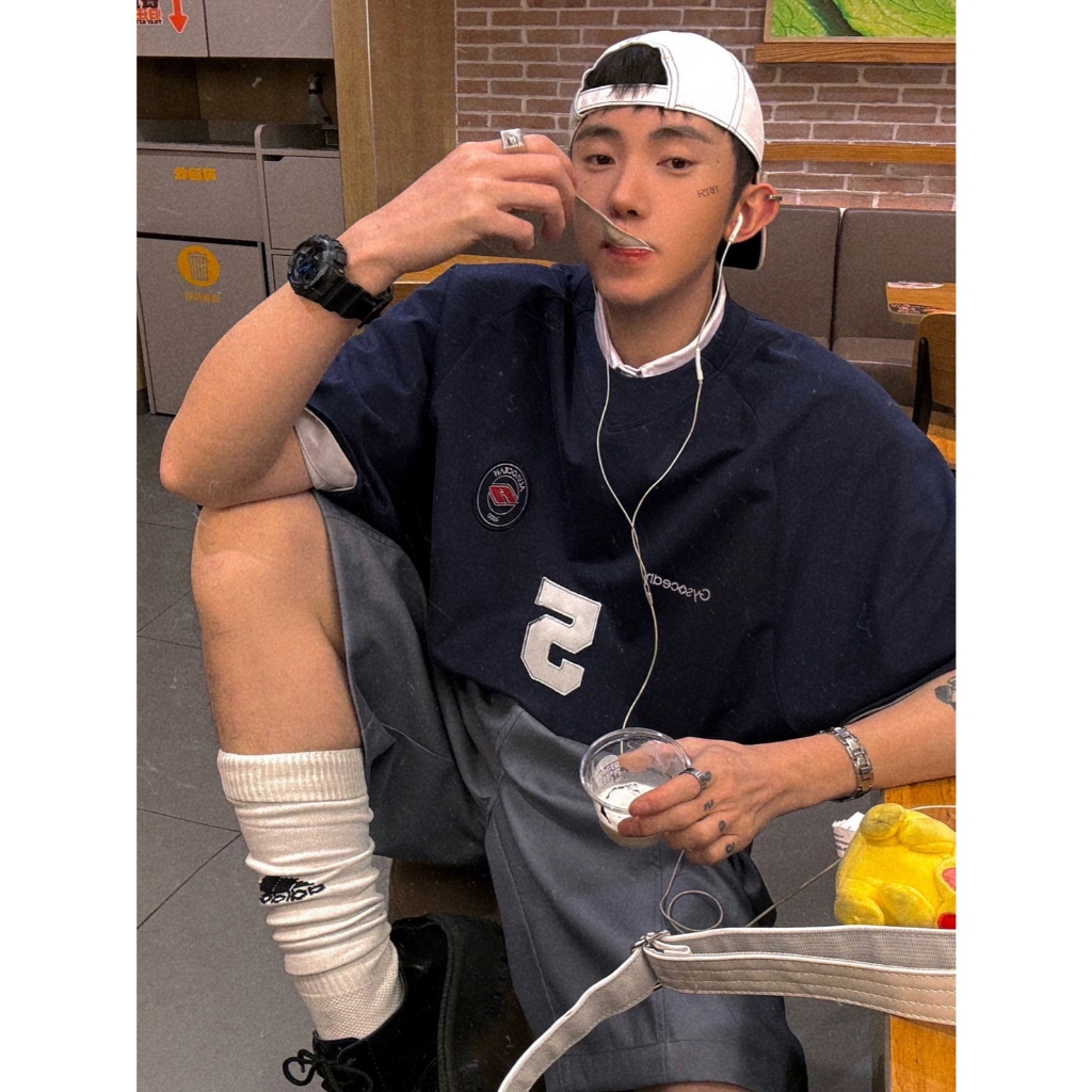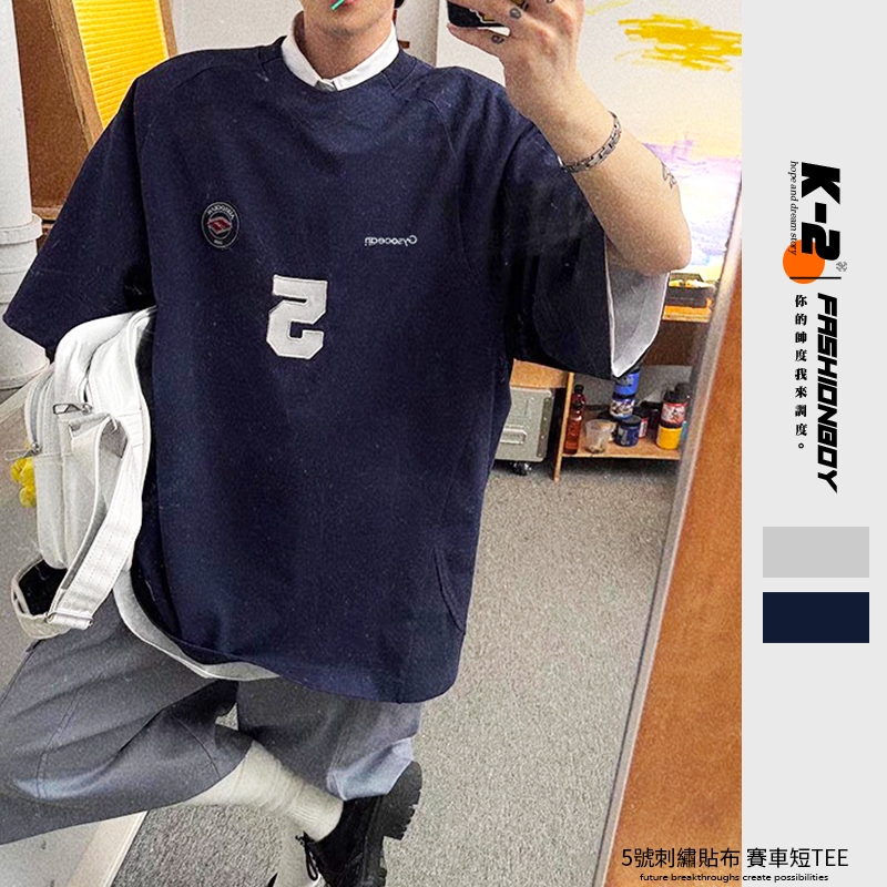 【K-2】CITYBOY 5號刺繡貼布 運動風 賽車短T 寬鬆 學院風 LOGO 短袖 刺繡 上衣 情侶【KPL024】白灰色,M|白灰色,L|藏青色,M|藏青色,LT-ShirtsK-2 Fashionboy