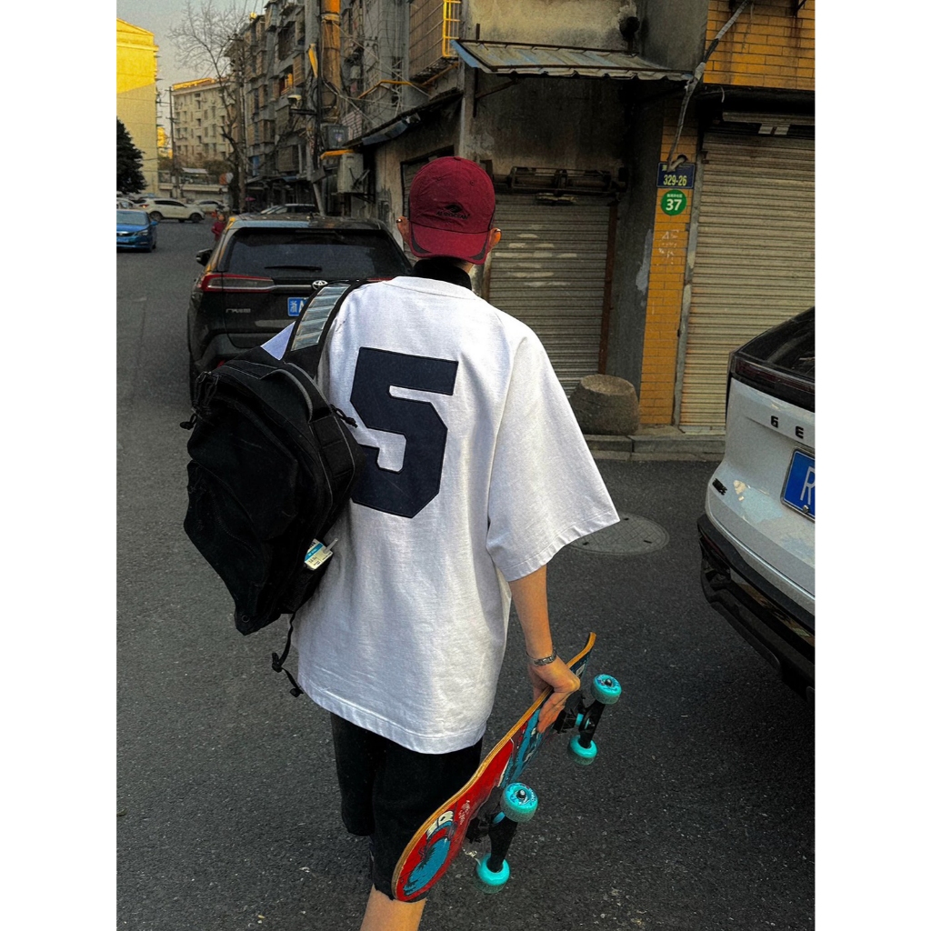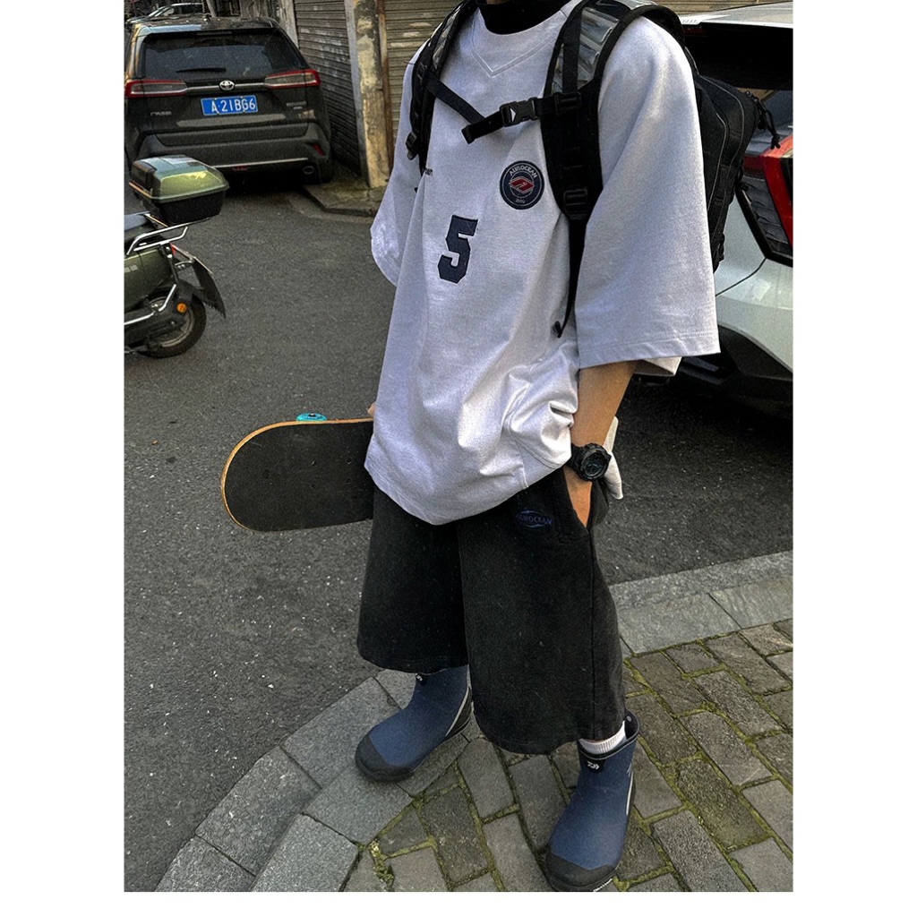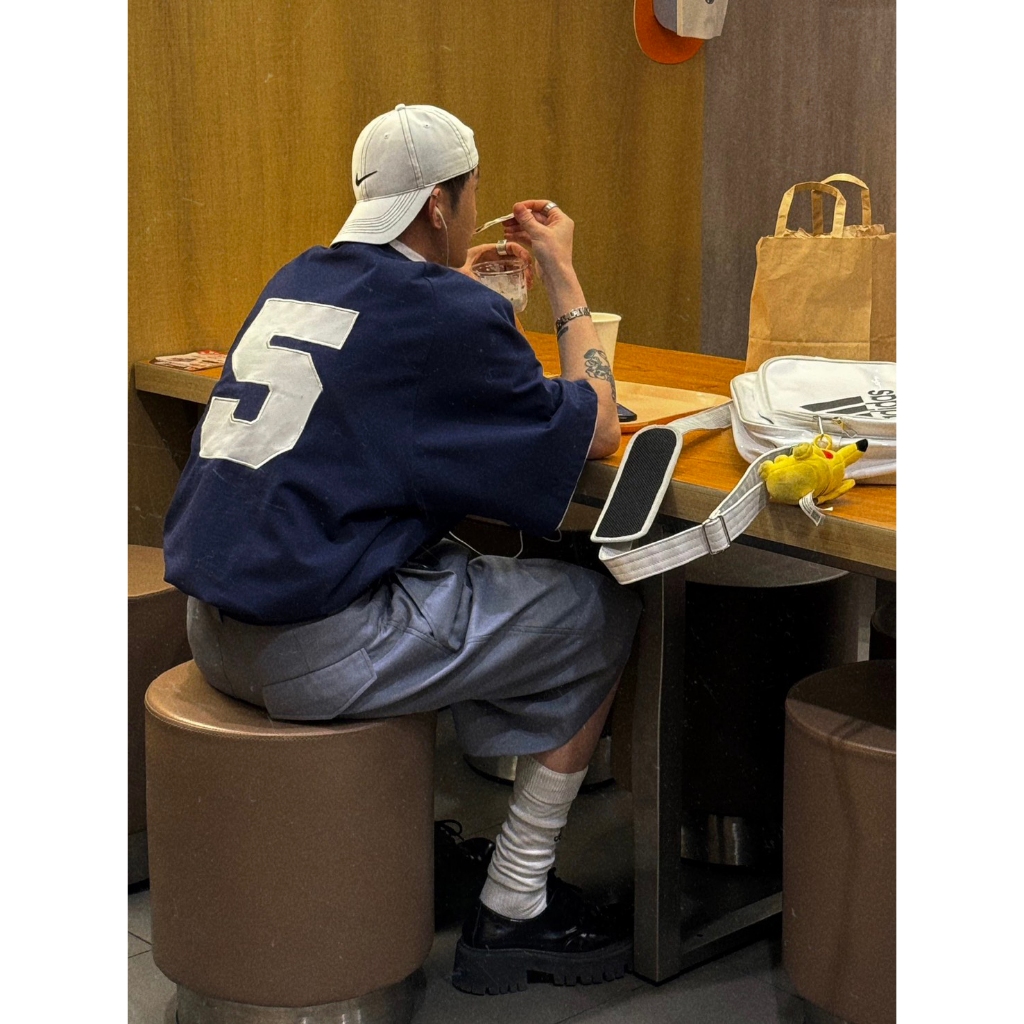 【K-2】CITYBOY 5號刺繡貼布 運動風 賽車短T 寬鬆 學院風 LOGO 短袖 刺繡 上衣 情侶【KPL024】白灰色,M|白灰色,L|藏青色,M|藏青色,LT-ShirtsK-2 Fashionboy