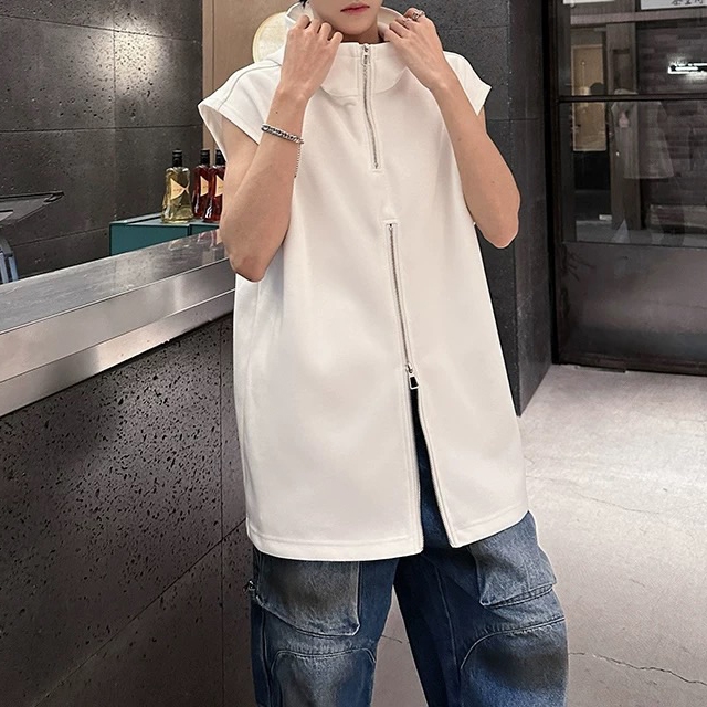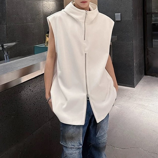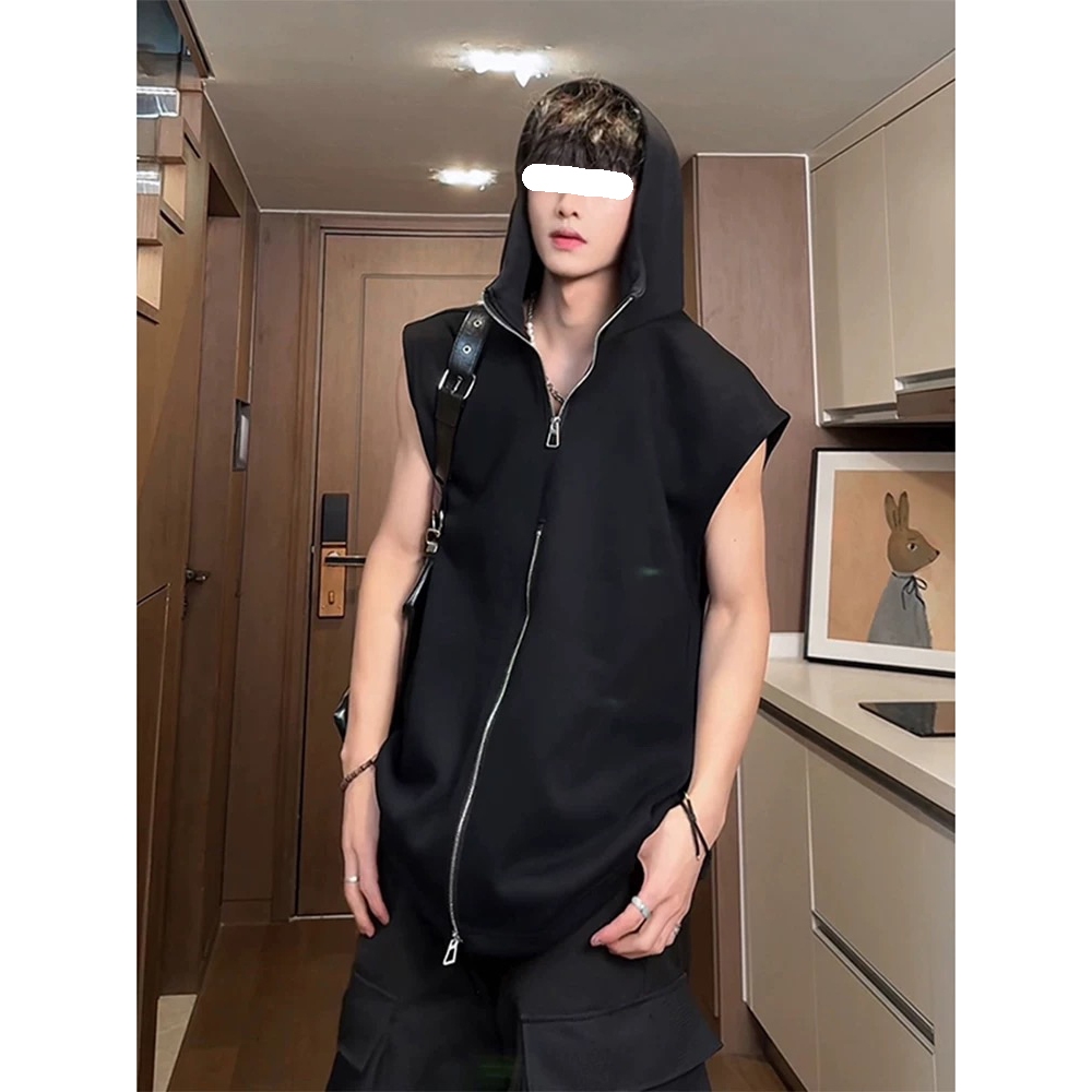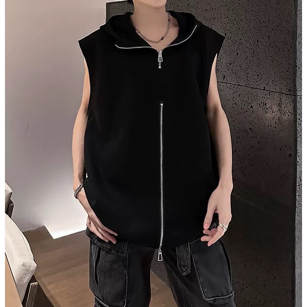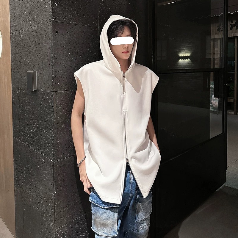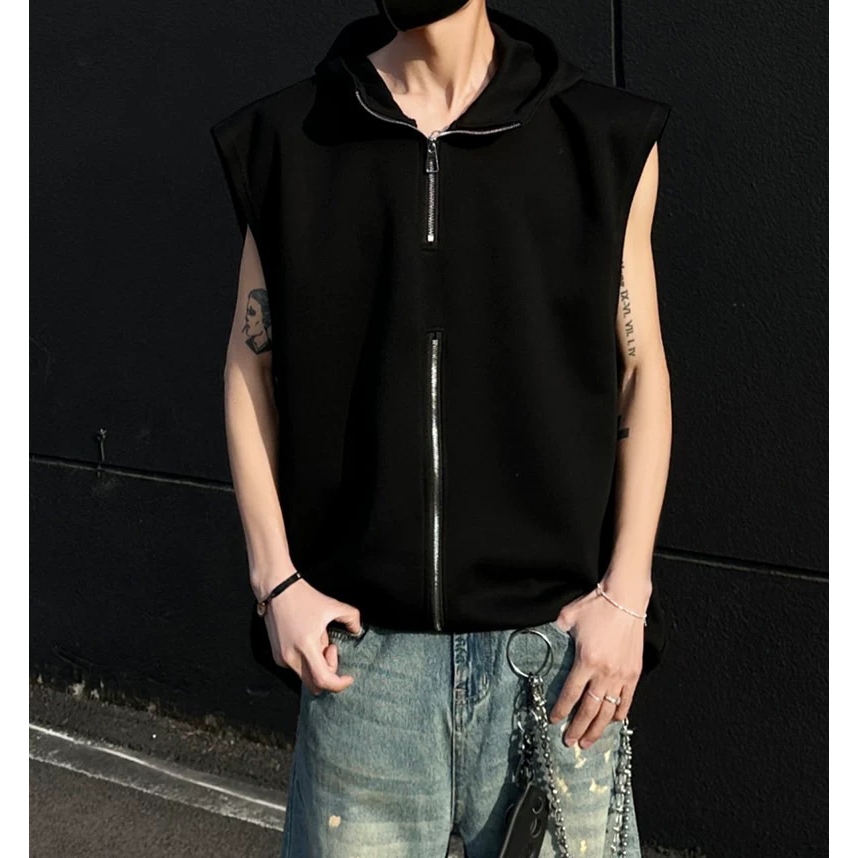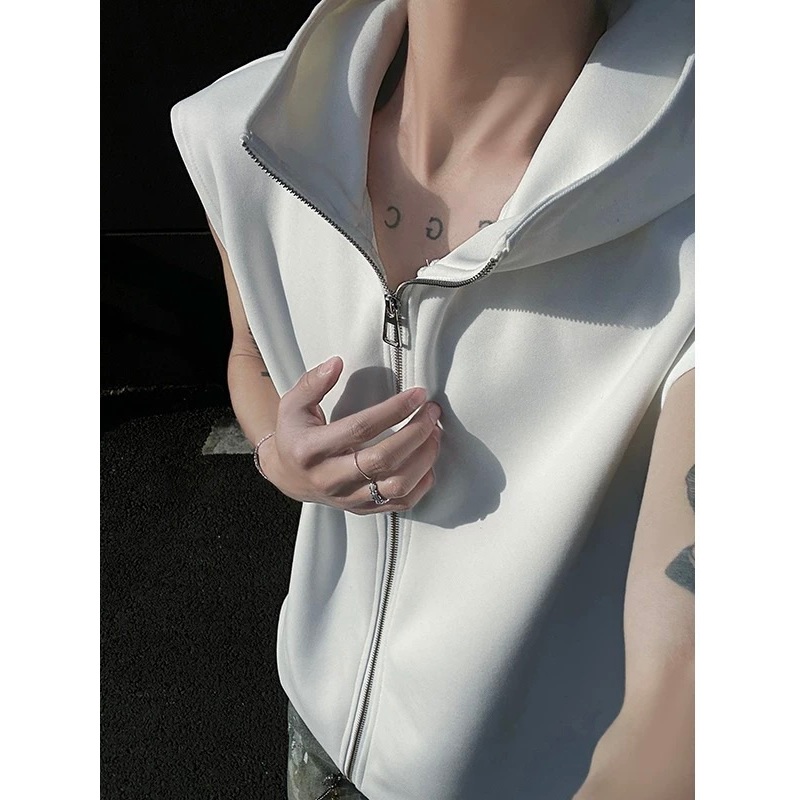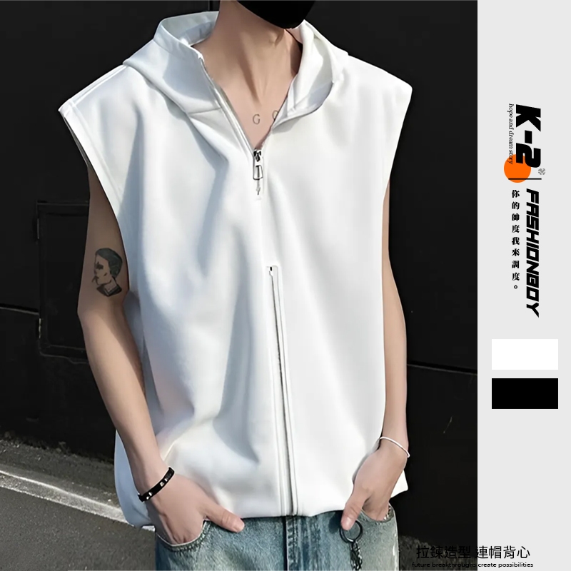 【K-2】金屬拉鍊 連帽 削肩背心 坦克背心 中拉鍊 造型背心 馬甲 背心 寬鬆背心 設計款 連帽背心 K2【JD60】白色,M|白色,L|白色,XL|黑色,M|黑色,L|黑色,XLVestsK-2 Fashionboy