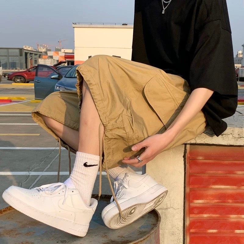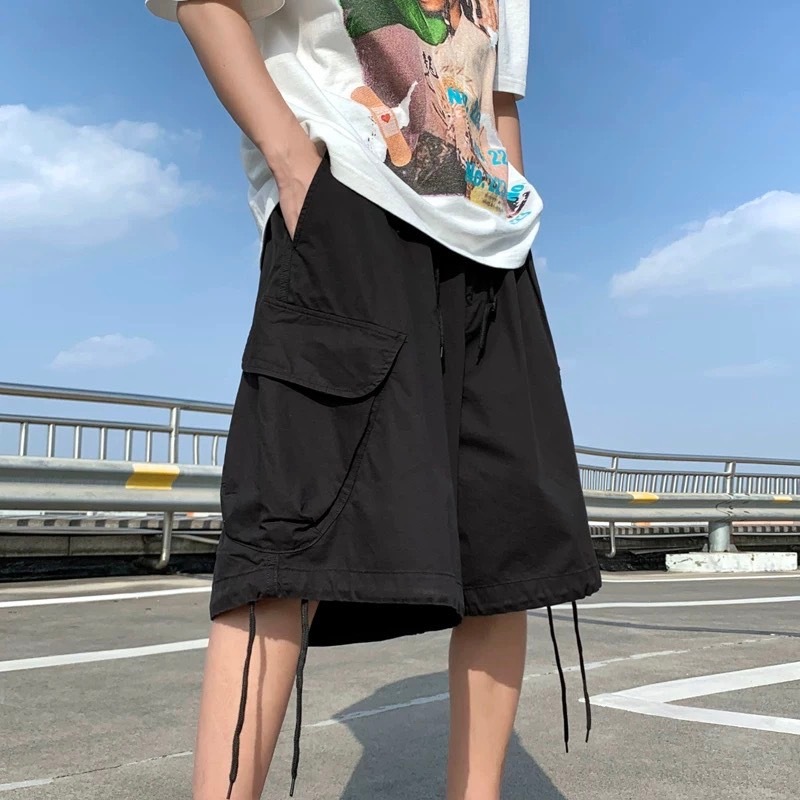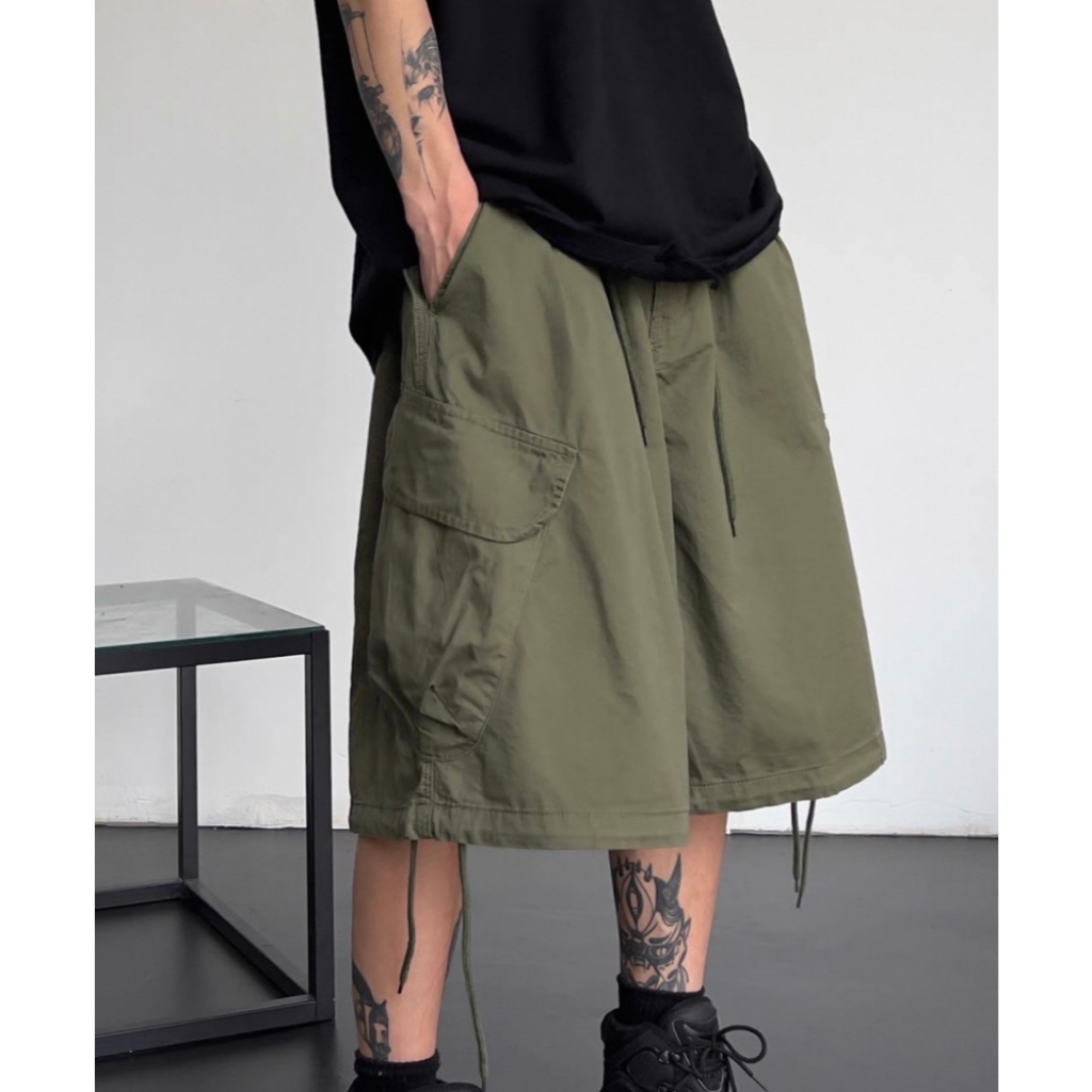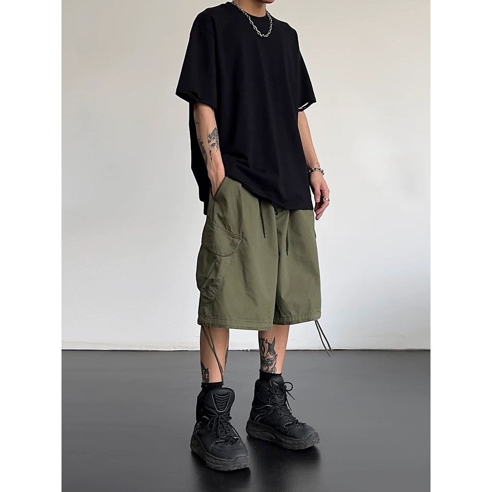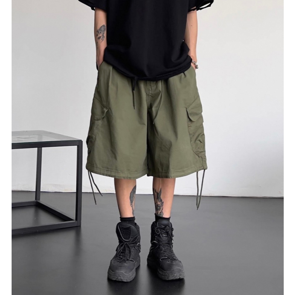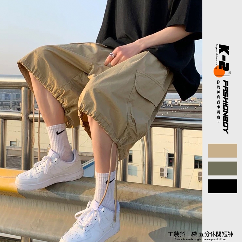 【K-2】日系斜切大口袋 山系 休閒工作短褲 飄繩 五分褲 寬褲 簡約百搭 抽繩 鬆緊腰 工作褲 短褲 K【KDG03】卡其色,L|卡其色,XL|卡其色,XXL|軍綠色,L|軍綠色,XL|軍綠色,XXL|黑色,L|黑色,XL|黑色,XXLK-2 Fashionboy