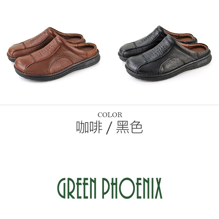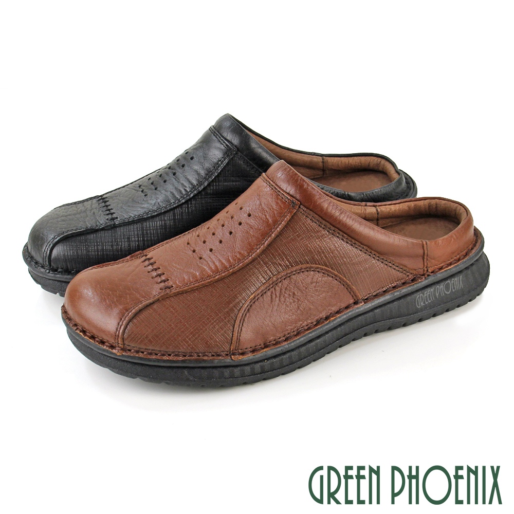 【GREEN PHOENIX 波兒德】全真皮拼接壓紋手縫休閒後空拖鞋/穆勒鞋/張菲鞋-男款 T12-12773咖啡12|黑色12|咖啡8|咖啡11|黑色7|黑色10|咖啡6|咖啡7|黑色6|黑色8|黑色9|黑色11|咖啡9|咖啡10GREEN PHOENIX波兒德