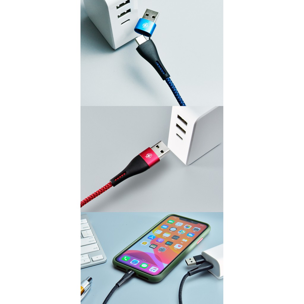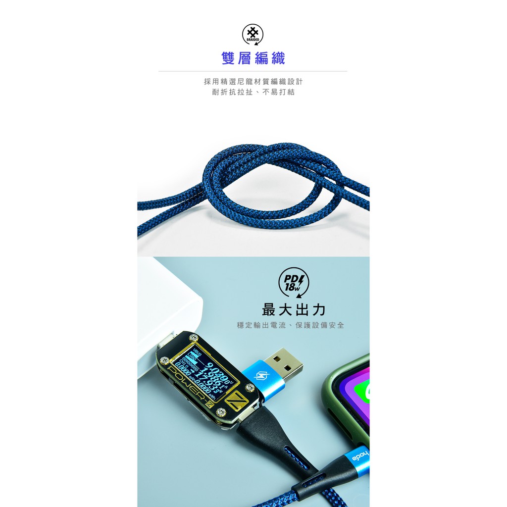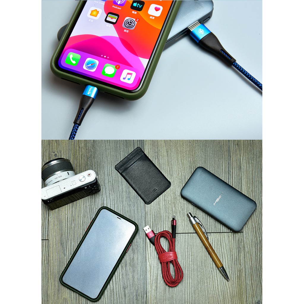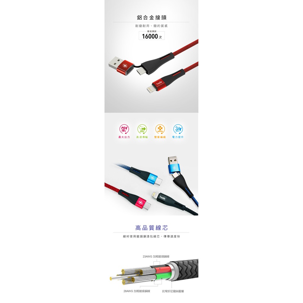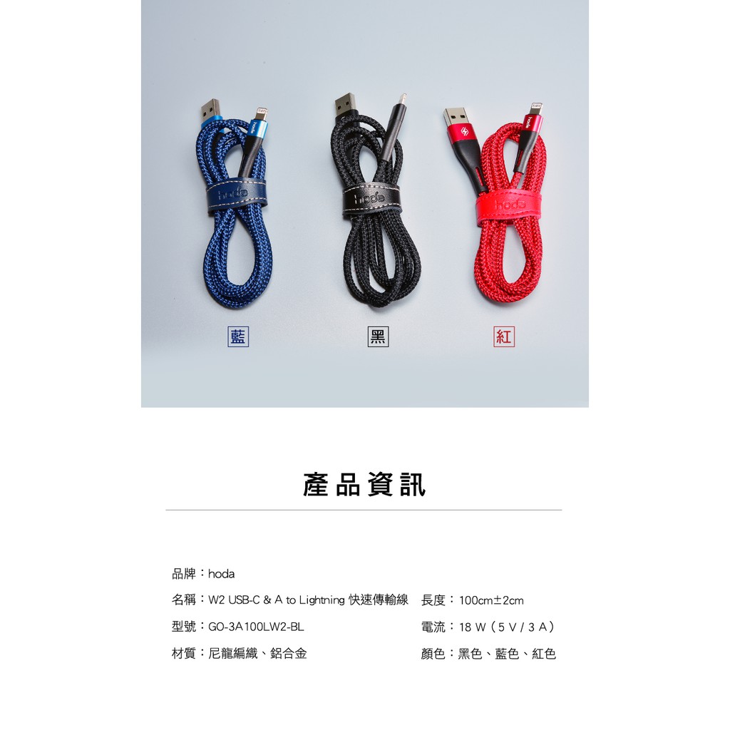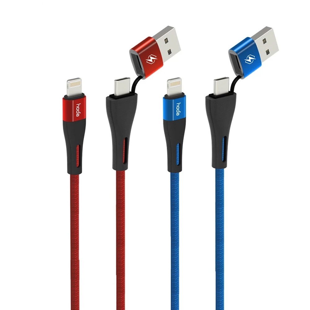 hoda USB-C & USB-A To Lightning W2二合一尼龍編織PD快速充電傳輸線 100CM紅色|藍色Cables, Chargers & ConvertersHODA 官方賣場