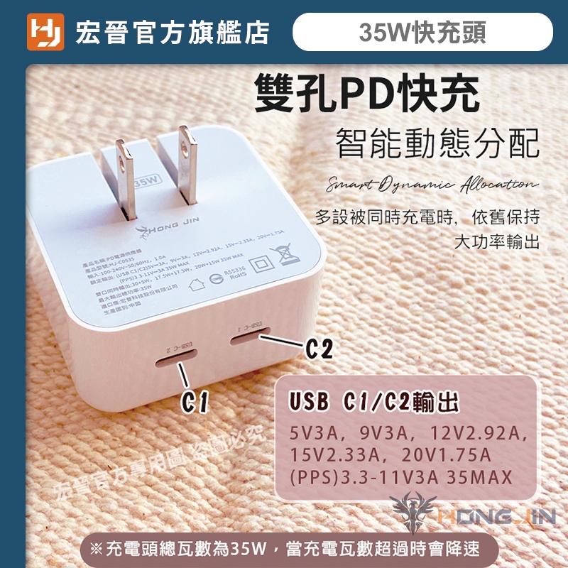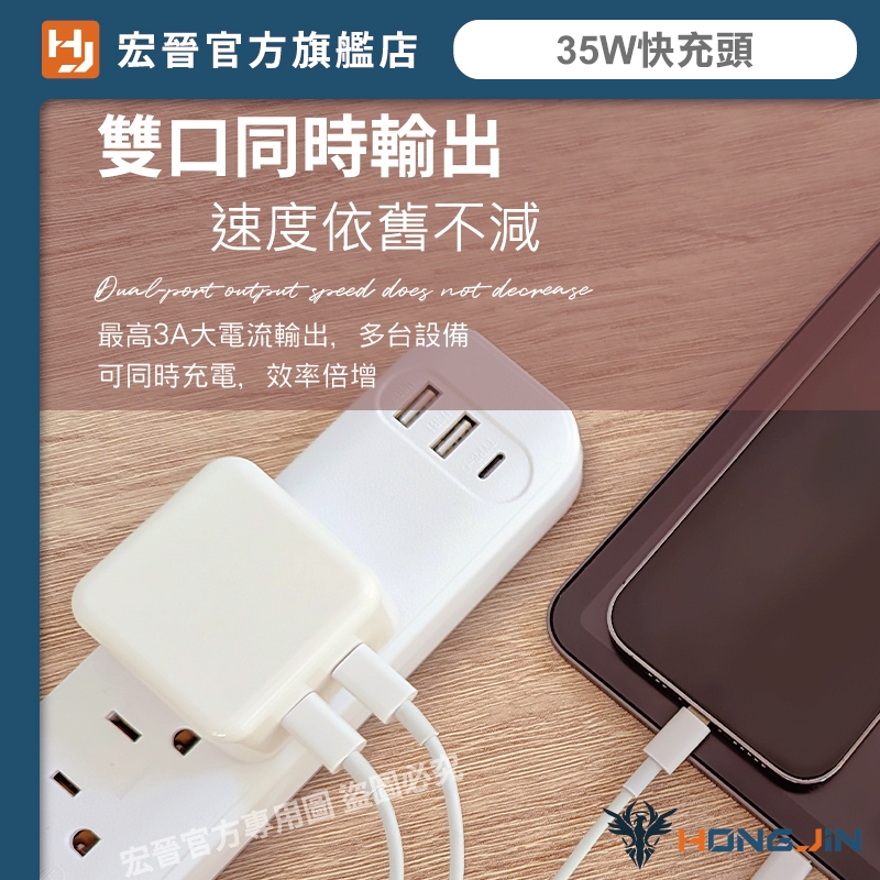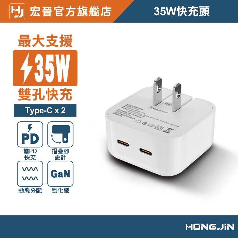 宏晉 35W快充頭 雙孔快充 不降速 35W 雙TYPE-C 豆腐頭 動態分配 充電頭 充電器 可同時充手機 平板 手錶35W手機快充頭(動態分配 全設配可用)Cables, Chargers & ConvertersHONG JIN 宏晉 |3C資訊廣場