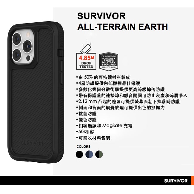 Griffin iPhone 13 Pro 6.1″ Survivor Earth 軍規抗菌4重防護4.8米防摔殼-黑色Griffin iPhone 13 Pro 6.1″ Survivor Earth 軍規抗菌4重防護4.8米防摔殼-黑色Cases, Covers, & SkinsGlowmax Apple 週邊配件館