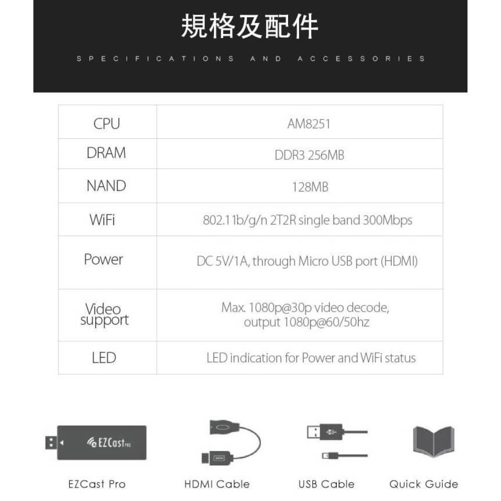 EZCast Pro 無線投影棒 HDMI影音傳輸棒 AirPlay 簡報、文字、圖片投影好幫手EZCast PRO|福利品(簡易包裝)Casting DevicesGlorykylin 耀麟國際官方旗艦店