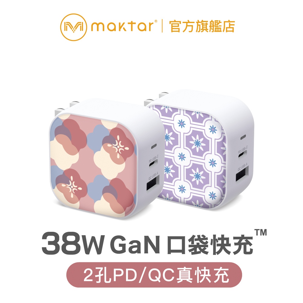 Maktar 38W GaN 氮化鎵 印花樂聯名 口袋快充 充電器 2孔快充 玻璃海棠 / 紫色花磚 ★贈聯名收納袋38W 玻璃海棠|38W 玻璃海棠 + 2代萬國轉接頭|38W 紫色花磚|38W 紫色花磚 + 2代萬國轉接頭Cables, Chargers & ConvertersMaktar 口袋相簿 備份豆腐品牌官方旗艦店