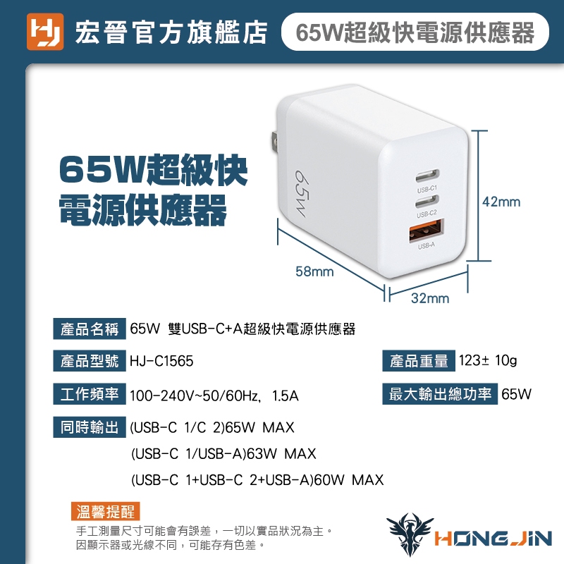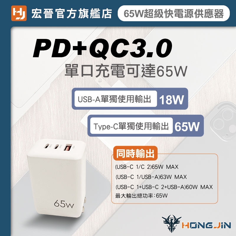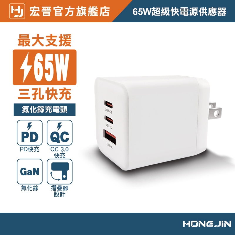 宏晉 65W超級快電源供應器 65W 充電頭 氮化鎵 GaN 三孔PD快充頭 PD手機充電器 可充筆電 Type-C宏晉 65W超級快電源供應器 65W 充電頭 氮化鎵 GaN 三孔PD快充頭 PD手機充電器 可充筆電 Type-CCables, Chargers & ConvertersHONG JIN 宏晉 |3C資訊廣場