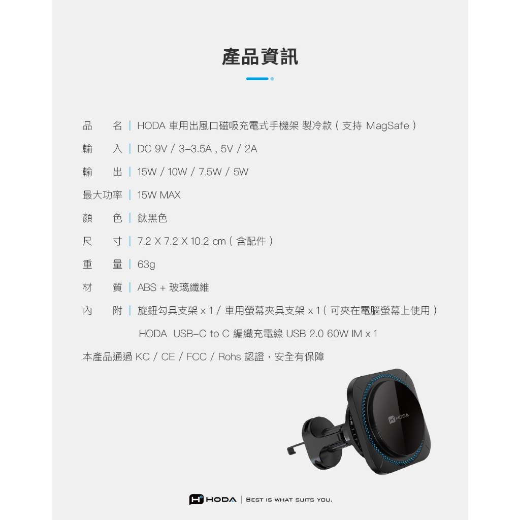 HODA 製冷款車用出風口磁吸充電式手機架 (支持MagSafe / 內附 C to C 充電線)HODA 製冷款車用出風口磁吸充電式手機架 (支持MagSafe / 內附 C to C 充電線)Cables, Chargers & ConvertersHODA 官方賣場