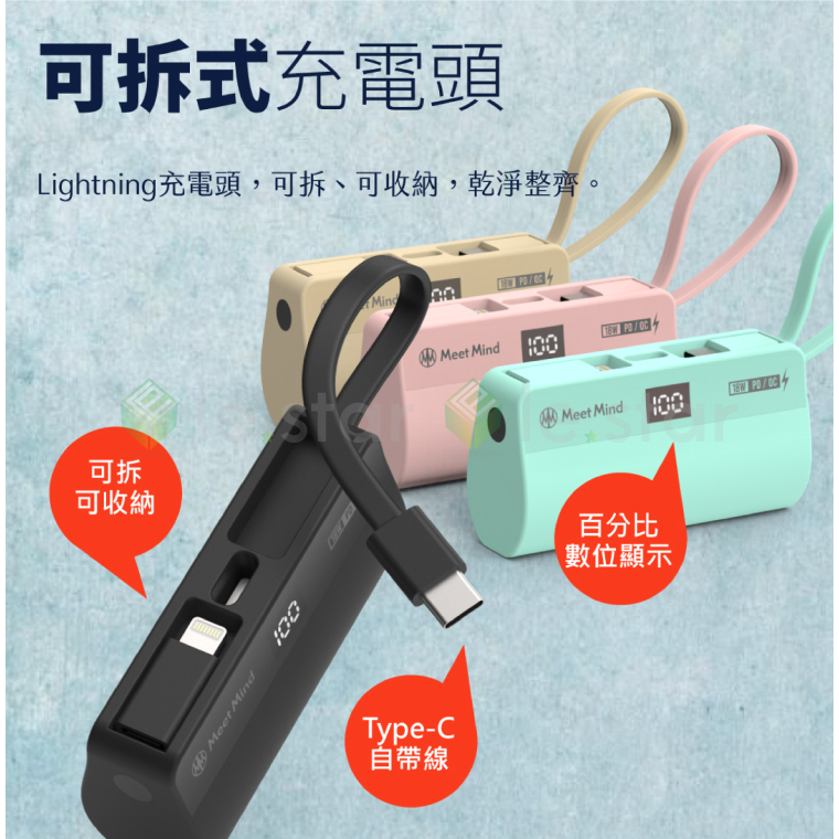 Meet Mind PD/QC 5000mAh 直插式行動電源 口袋行動電源 小巧便攜 附L頭+C頭L頭+C頭+C自帶線-直插式行動電源 黑|L頭+C頭+C自帶線-直插式行動電源 粉|L頭+C頭+C線-直插式行動電源 奶茶|L頭+C頭+C自帶線-直插式行動電源 白|L頭+C頭+C線-直插式行動電源 薄荷綠|L轉接頭 黑|L轉接頭 粉|L轉接頭 奶茶|L轉接頭 白|L轉接頭 薄荷綠|C轉接頭 黑|C轉接頭 粉|C轉接頭 奶茶|C轉接頭 白|C轉接頭 薄荷綠Powerbanks & BatteriesMeet Mind 品牌旗艦館