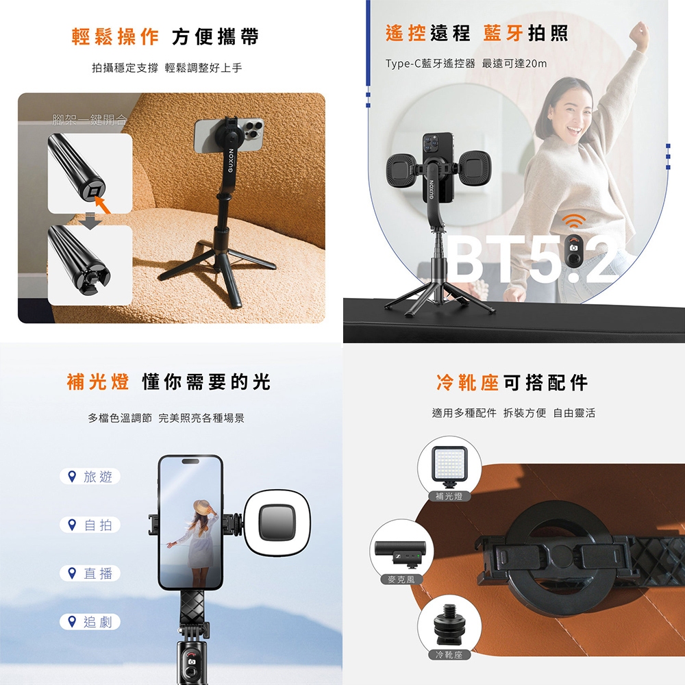 【GUXON】無線迷你自拍棒 適用直播 攝影 拍照 藍牙自拍棒 冷暖補光燈 藍牙磁吸自拍棒 自拍神器 三腳架