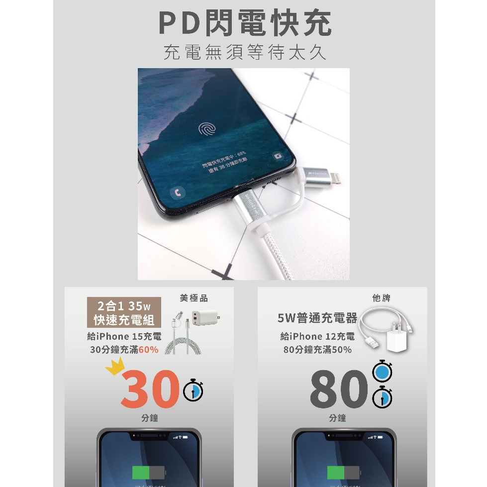美極品【35W 快速充電組|iPhone安卓雙系統皆可用】快充頭 快充線 GAN氮化鎵 編織快充線 110公分快速充電線|35W GAN氮化稼快速充電頭|最划算組合(快充線 + 快充頭)Cables, Chargers & ConvertersMAGIPEA美極品官方帳號