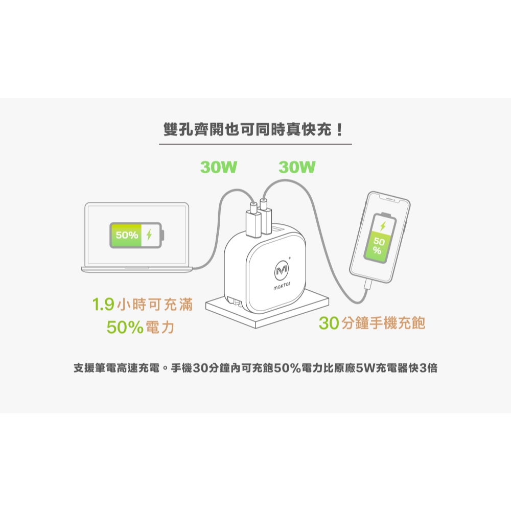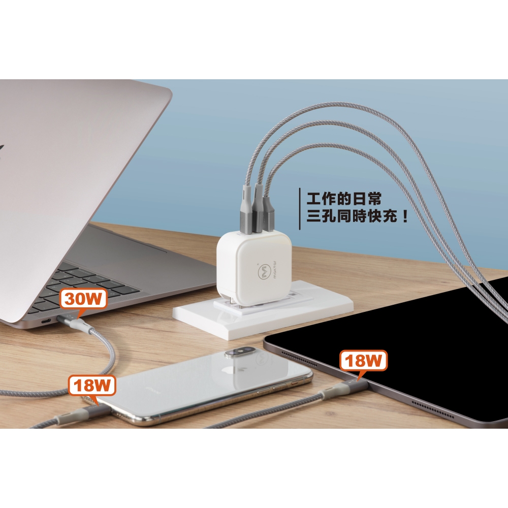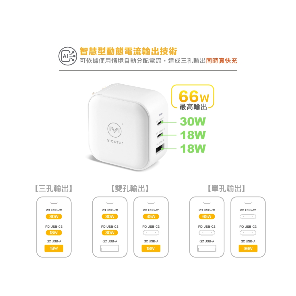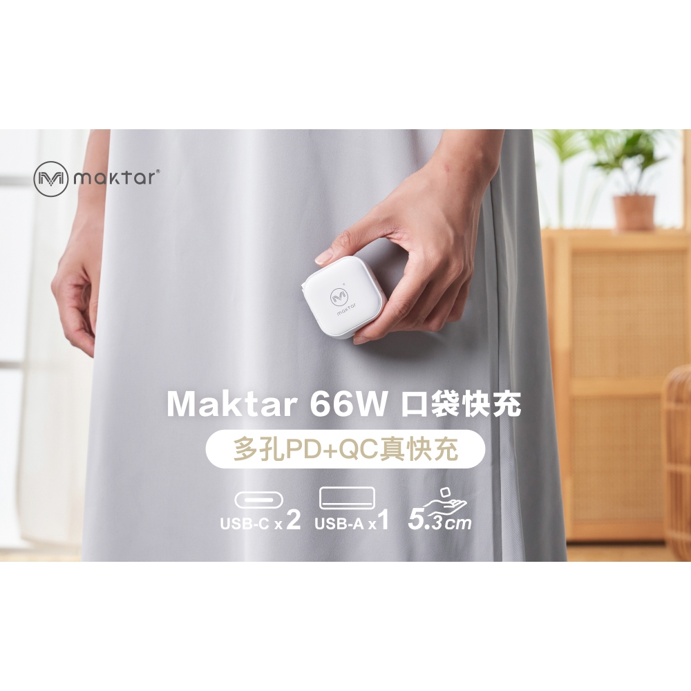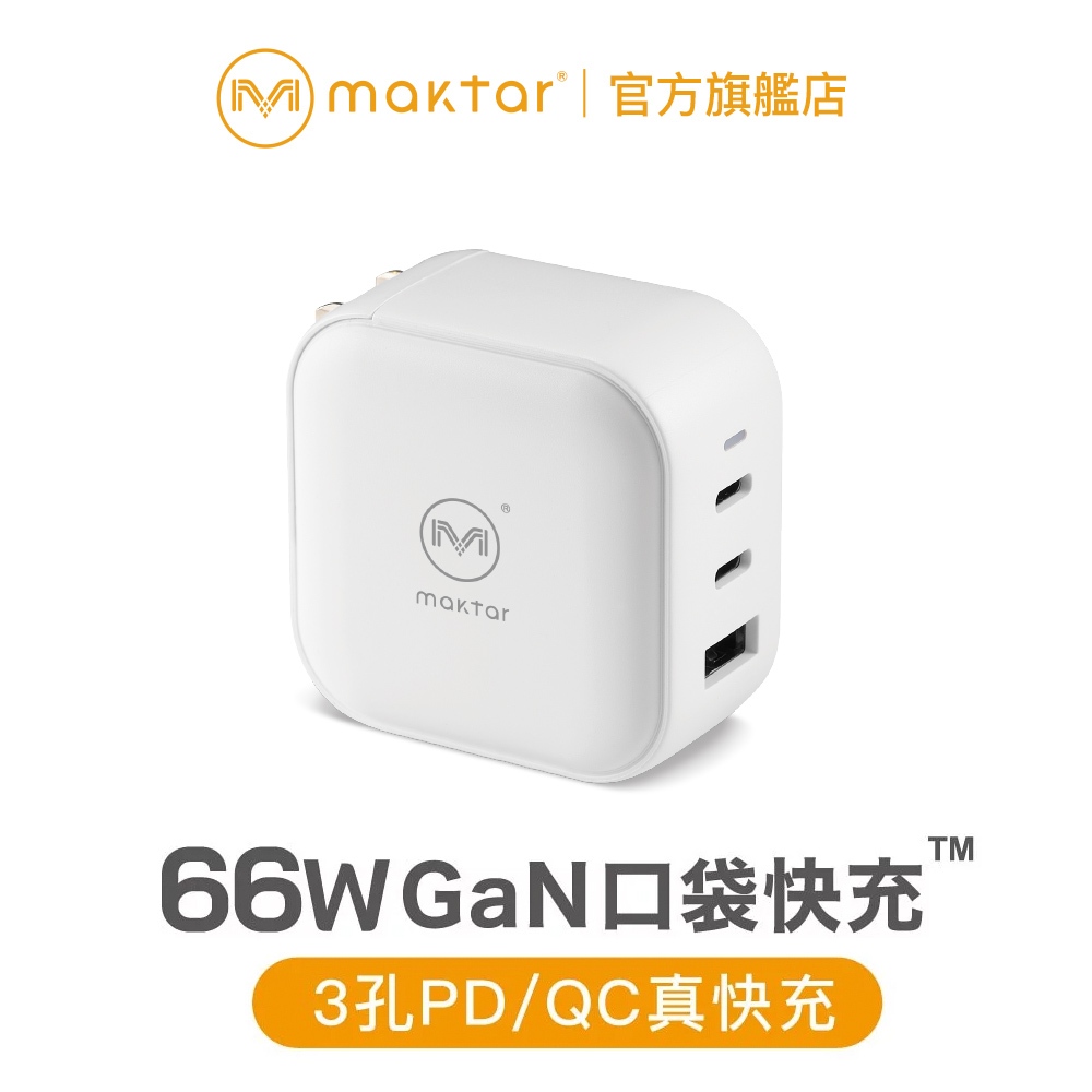 Maktar 66W GaN 氮化鎵 口袋快充 充電器 三孔快充 贈收納包時尚白|時尚白+2代萬國轉接頭Cables, Chargers & ConvertersMaktar 口袋相簿 備份豆腐品牌官方旗艦店