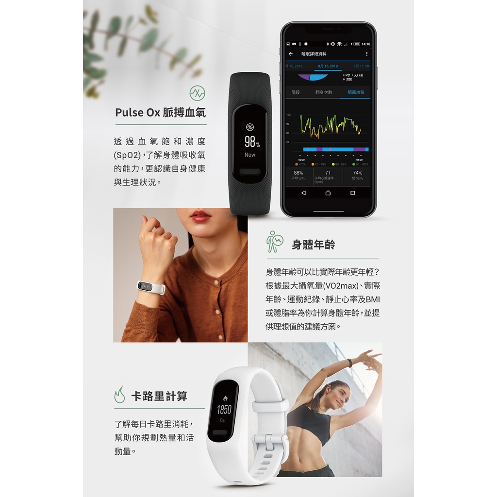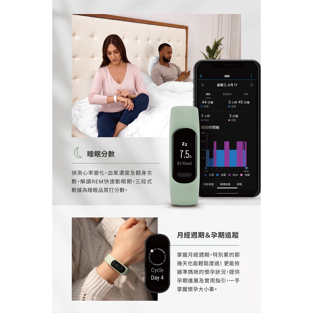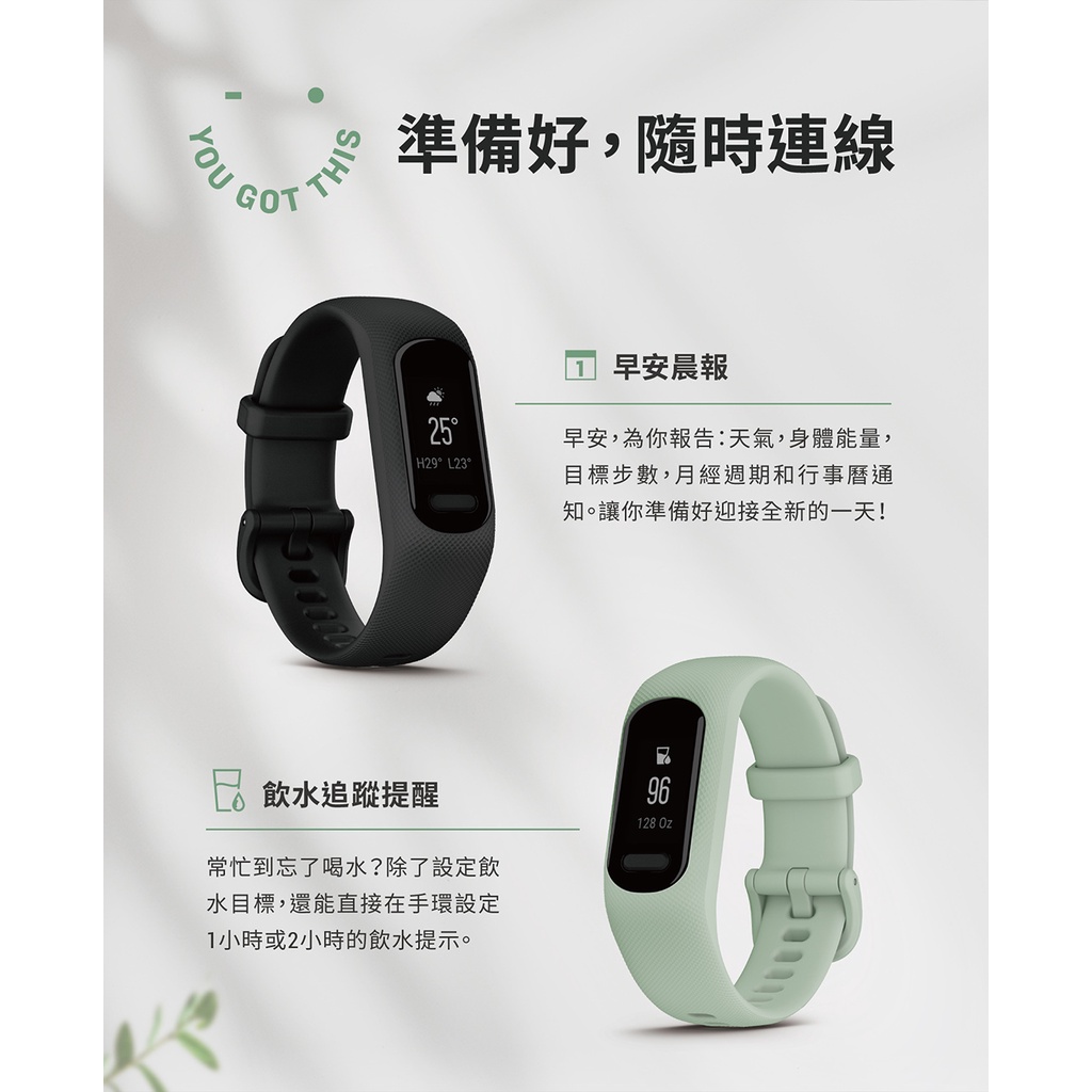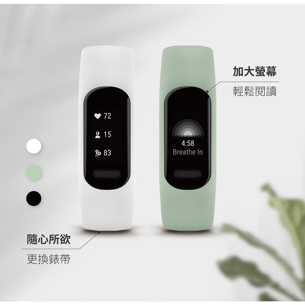 GARMIN Vivosmart 5 健康心率手環 (Vivosmart5)晨光白 S/M|薄荷綠 S/M|靜夜黑 S/M|靜夜黑 LSmartwatches & Fitness TrackersGARMIN 官方旗艦館
