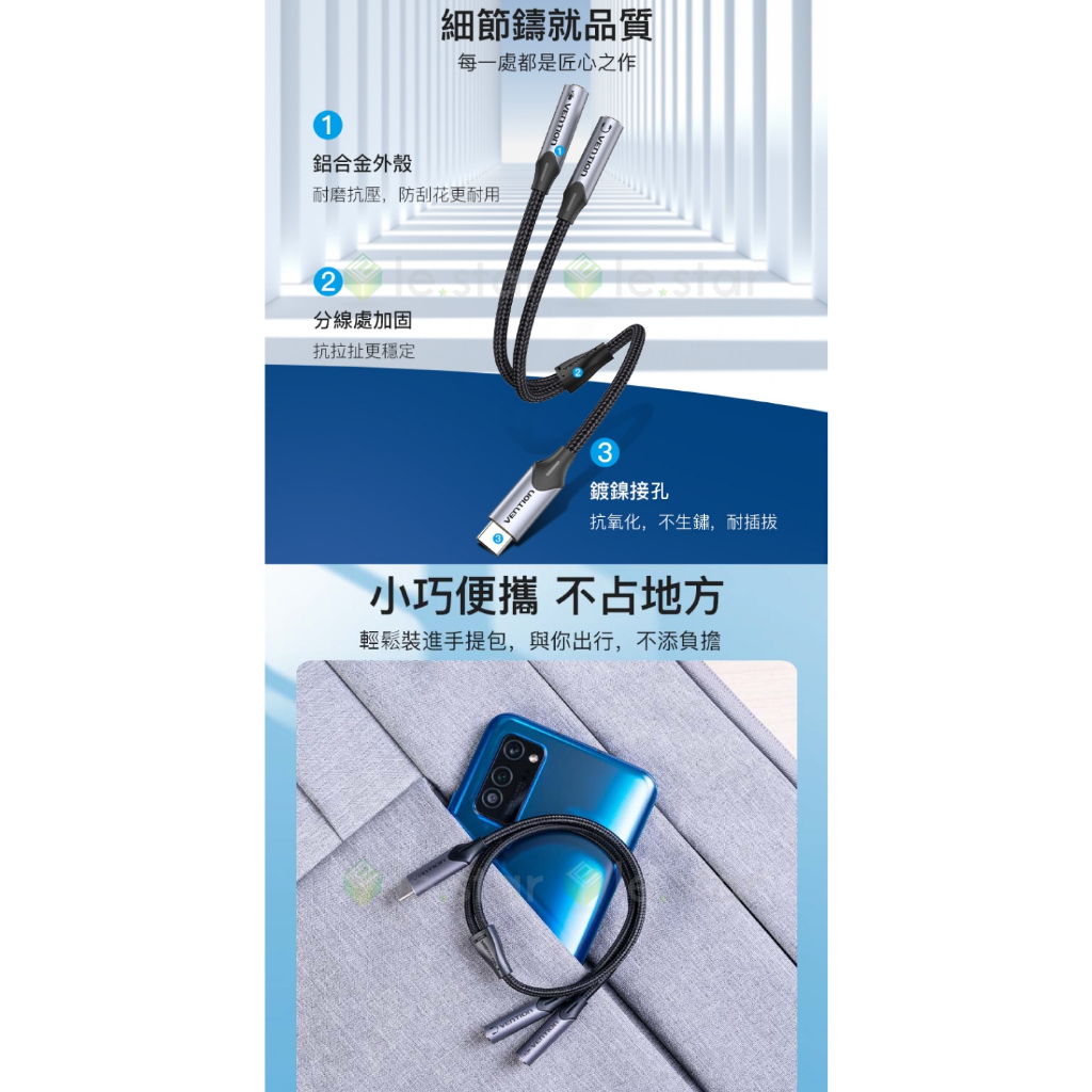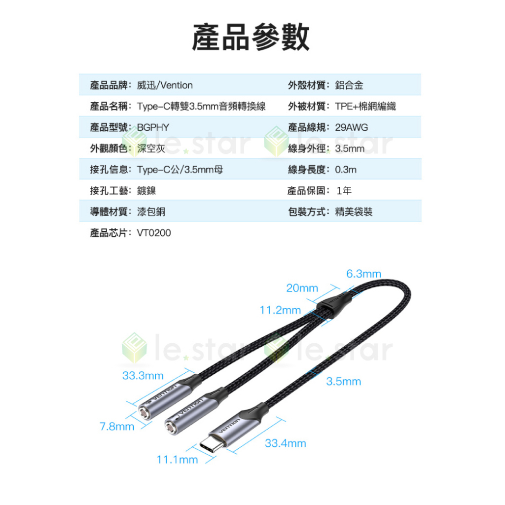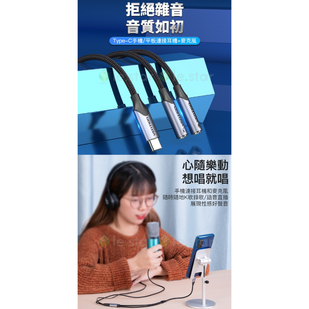 VENTION 威迅 BGP系列 Type-C轉雙3.5mm 音頻轉換線-帶麥克風鋁合金款 0.3M 公司貨 音質清晰VENTION 威迅 BGP系列 Type-C轉雙3.5mm 音頻轉換線-帶麥克風鋁合金款 0.3M 公司貨 音質清晰Cables, Chargers & Converterslestar簡單生活