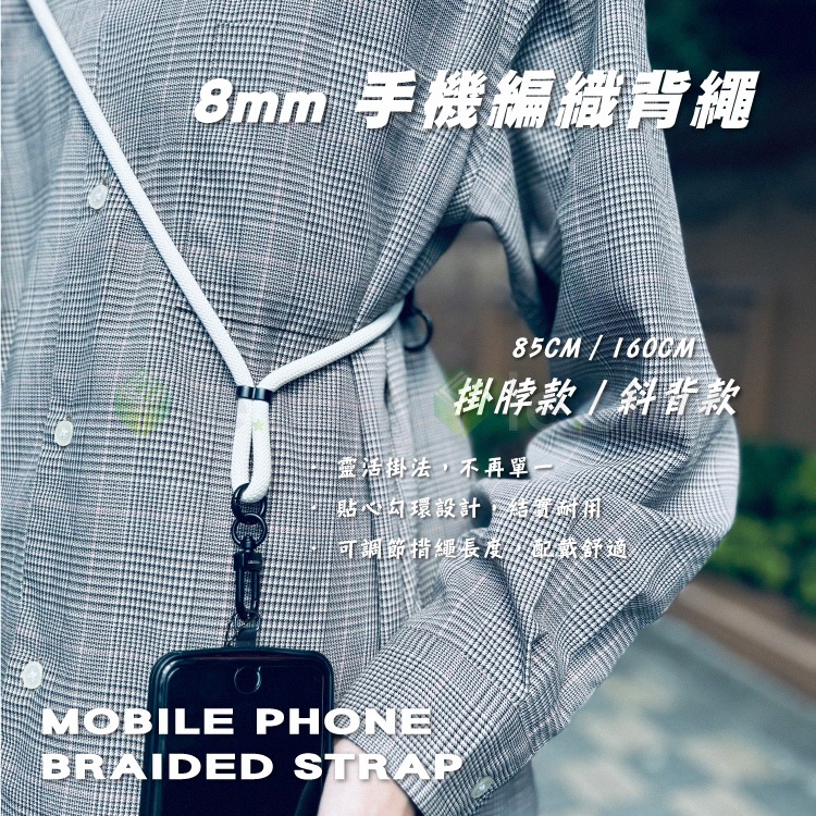 lestar 8mm 手機編織背繩 斜背 160CM 手機掛繩 手機吊繩 掛繩 手機背帶 手機繩 手機背繩隨機|墨綠|霧藍|淺紫|淺灰|間色寶藍|交叉粉色|交叉粉紫|繽紛色|螺旋白紫|螺旋白藍|螺旋黑藍|卡其|米色|黑色Phone Straps & Keychainslestar簡單生活