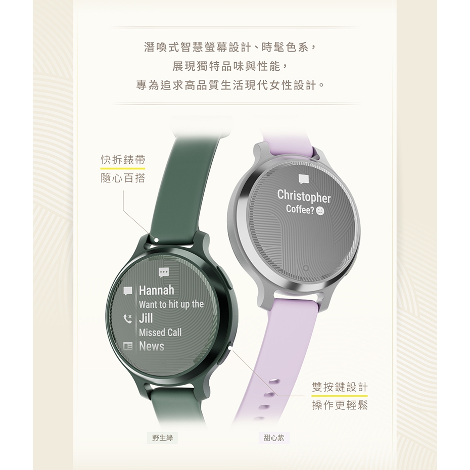 GARMIN Lily 2 Active GPS智慧腕錶 活力版 睡眠血氧壓力監測野生綠|奶油白|甜心紫Smartwatches & Fitness TrackersGARMIN 官方旗艦館