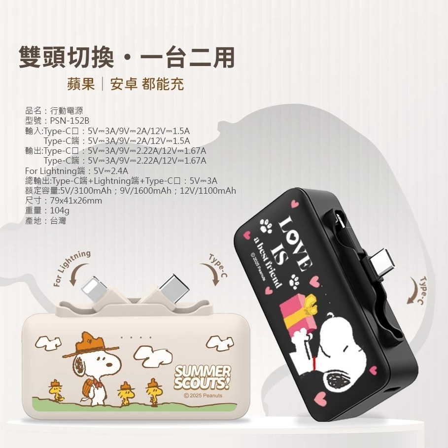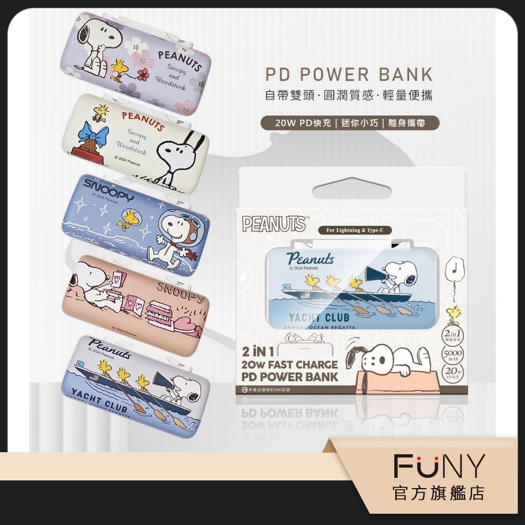 【SNOOPY 史努比】免線直充 雙頭 Type-C + Lightning 快充行動電源 5000mAh 正版授權台製微笑趴 (奶茶色)|送禮物 (黑)|好天氣 (奶茶色)|紙短情長 (藕)|朵朵紫花 (紫)|小船悠遊 (灰藍)|萌食時光 (奶茶色)|太空飛飛 (灰藍)Powerbanks & BatteriesFUNY台灣官方旗艦店