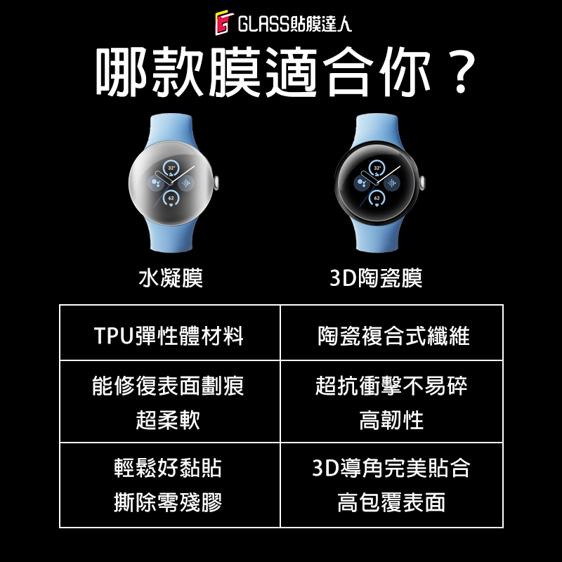 Google Watch 高清複合式 奈米 玻璃保護膜 螢幕保護貼 適用 Pixel Watch 3 2 13D陶瓷膜,Pixel Watch 3代 41mm|3D陶瓷膜,Pixel Watch 3代 45mm|3D陶瓷膜,Pixel Watch 1/2代Wearable AccessoriesGLASS貼膜達人-3C配件專賣|保護貼、手機殼、辦公室3C